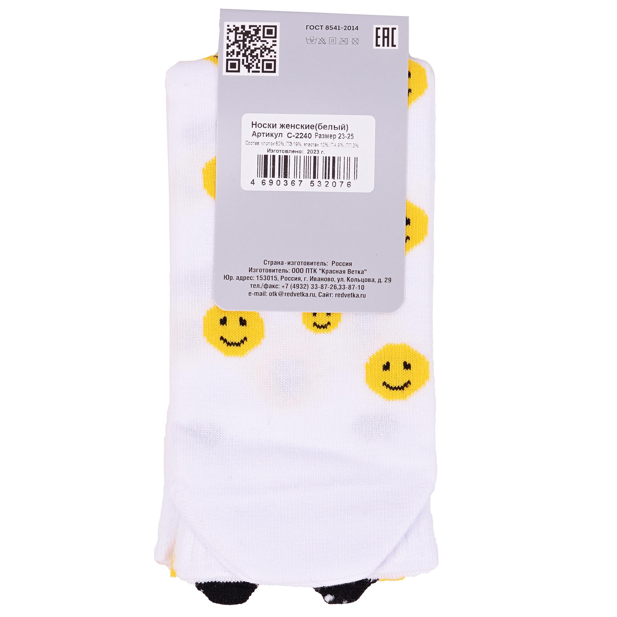 Круглогодичные средней длины женские носки, цвет белый, спортивные, повседневные, возможно бесшовные, принт (рисунок): в рубчик, с узором, состав: 60% хлопок, 19% полиэстер, 10% эластан, 9% полиамид, 2% полипропилен, арт. С-2240. Производитель «КРАСНАЯ ВЕТКА» Россия под брендом «Красная ветка».