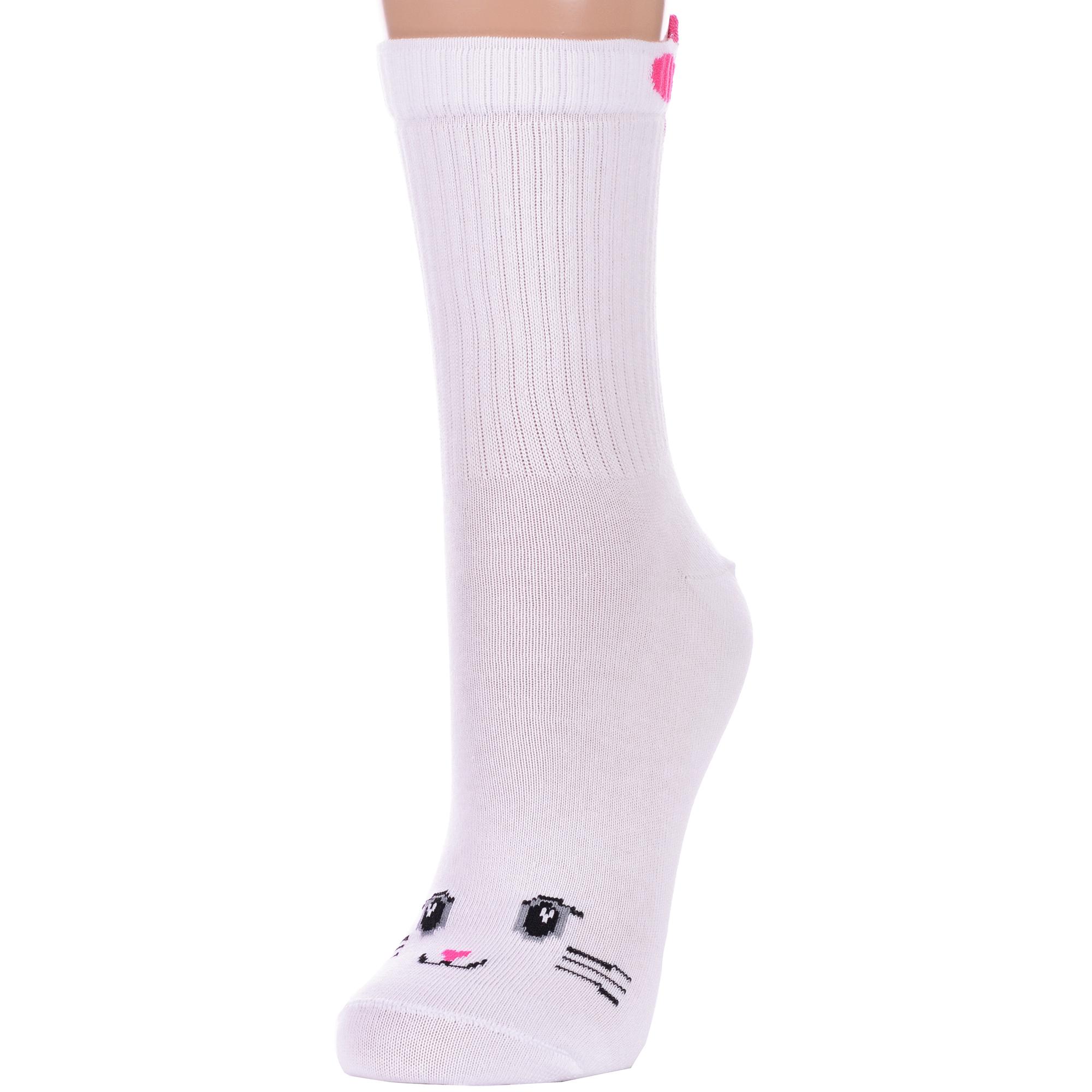 Круглогодичные средней длины женские носки, цвет белый, спортивные, повседневные, возможно бесшовные, принт (рисунок): животные, в рубчик, с узором, состав: 57% хлопок, 19% полиэстер, 10% полиамид, 10% полипропилен, 4% эластан, арт. С-2243. Производитель «КРАСНАЯ ВЕТКА» Россия под брендом «Красная ветка».