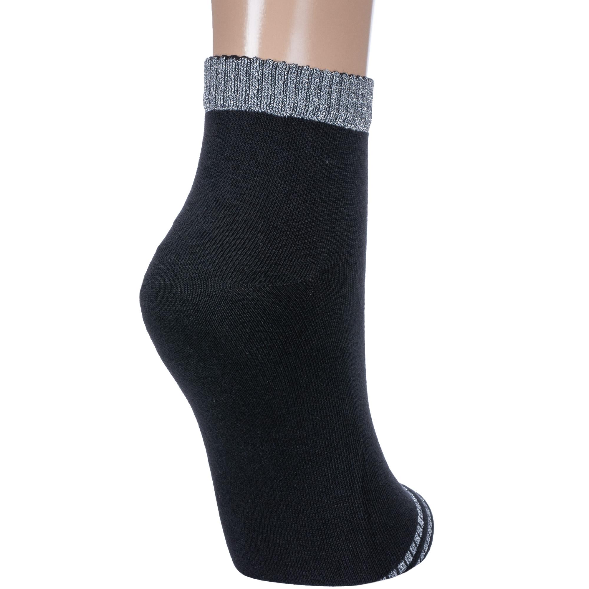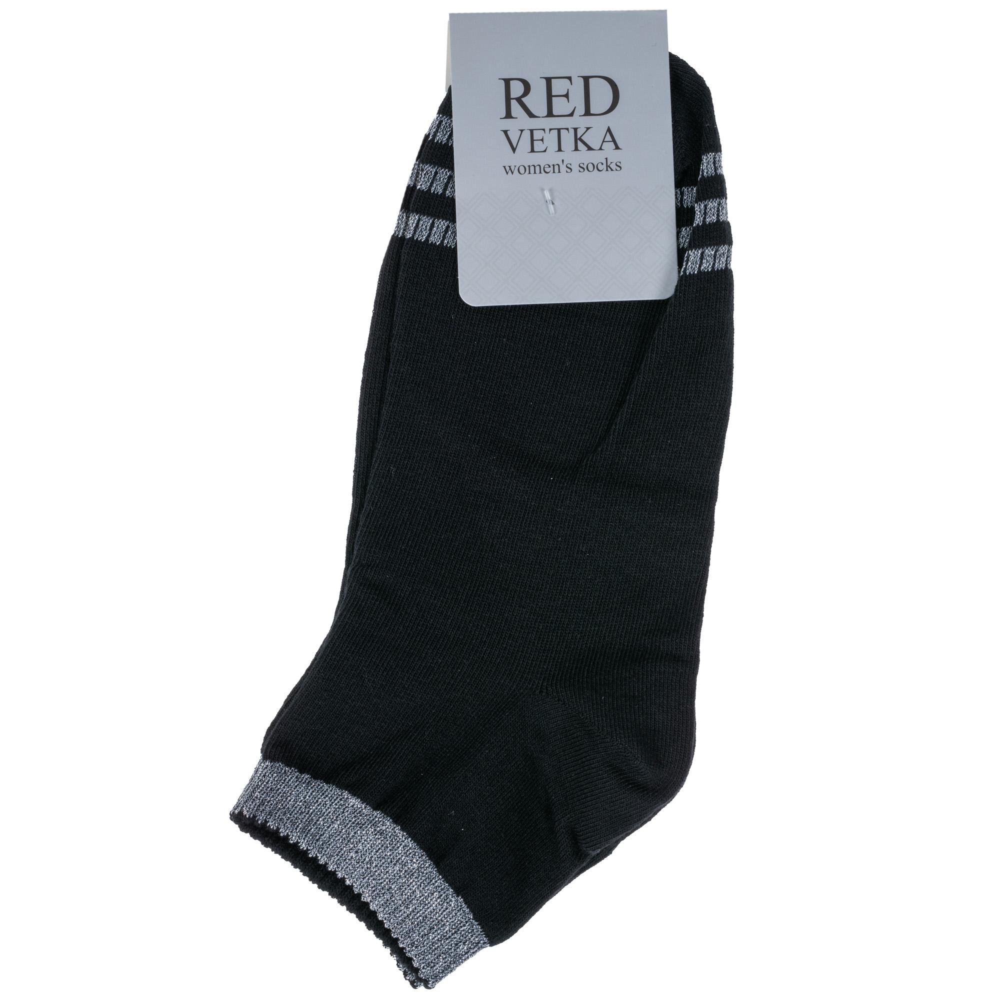 Круглогодичные укороченные женские носки, цвет черный, спортивные, возможно бесшовные, принт (рисунок): полоски, контрастные пятка / мысок / резинка, блеск люрекса, с узором, состав: 70% хлопок, 21% полиамид, 5% люрекс, 4% эластан, арт. С-1267. Производитель «КРАСНАЯ ВЕТКА» Россия под брендом «Красная ветка».