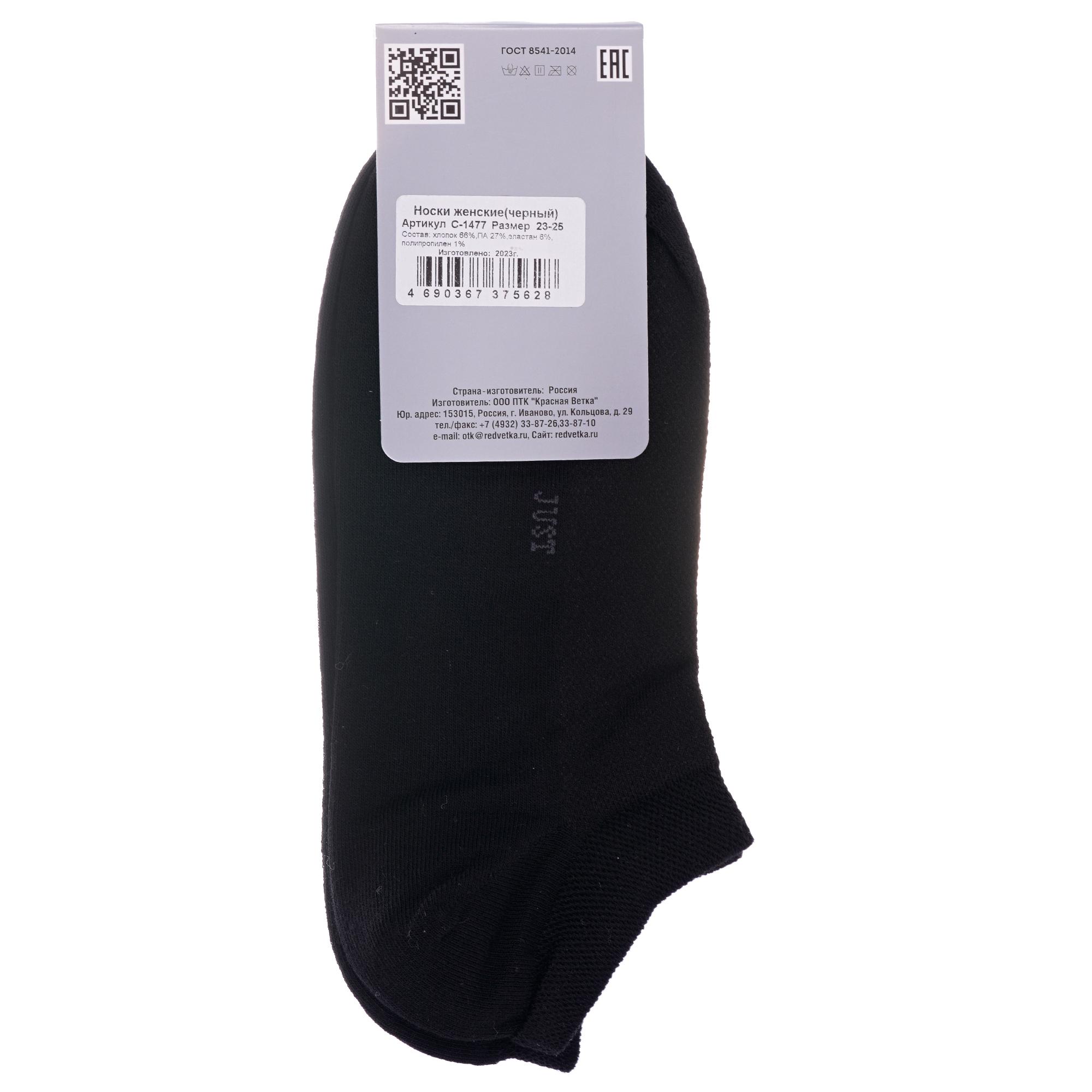 Круглогодичные короткие женские носки, цвет черный, спортивные, в сеточку, возможно бесшовные, принт (рисунок): однотонный, без рисунков/узоров, состав: 66% хлопок, 27% полиамид, 6% эластан, 1% полипропилен, арт. С-1477. Производитель «КРАСНАЯ ВЕТКА» Россия под брендом «Красная ветка».