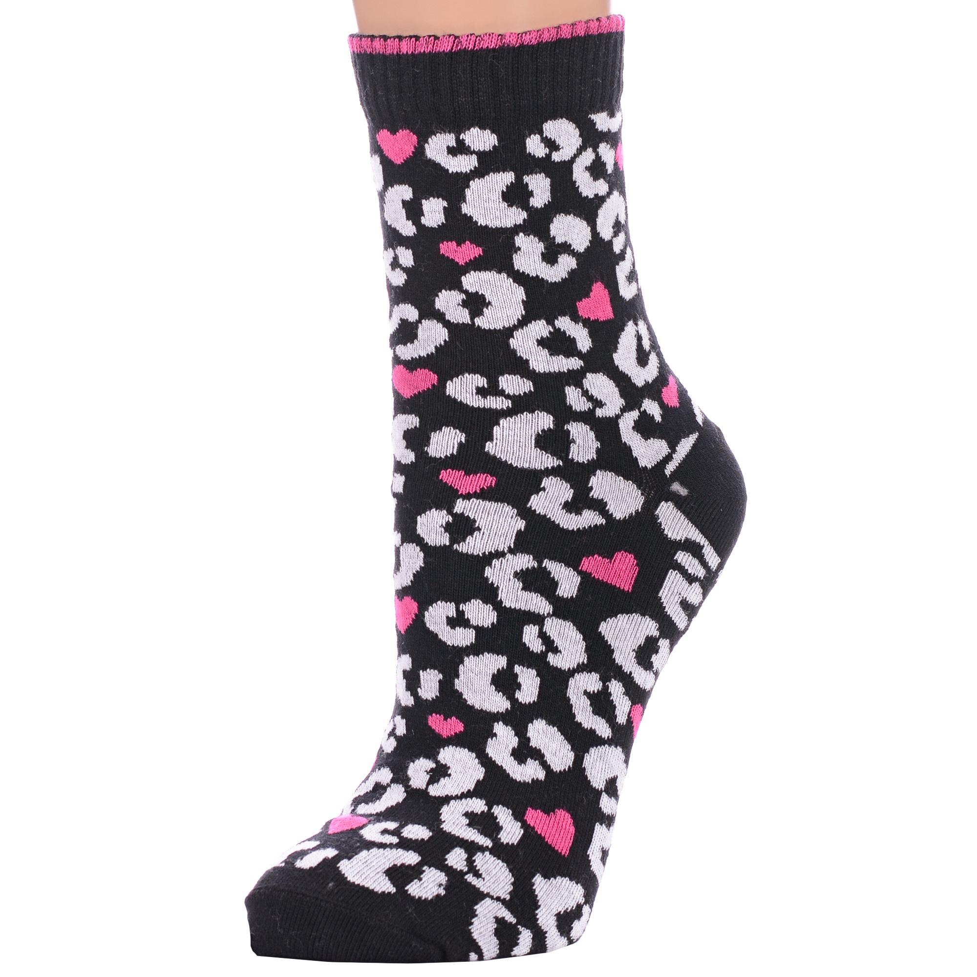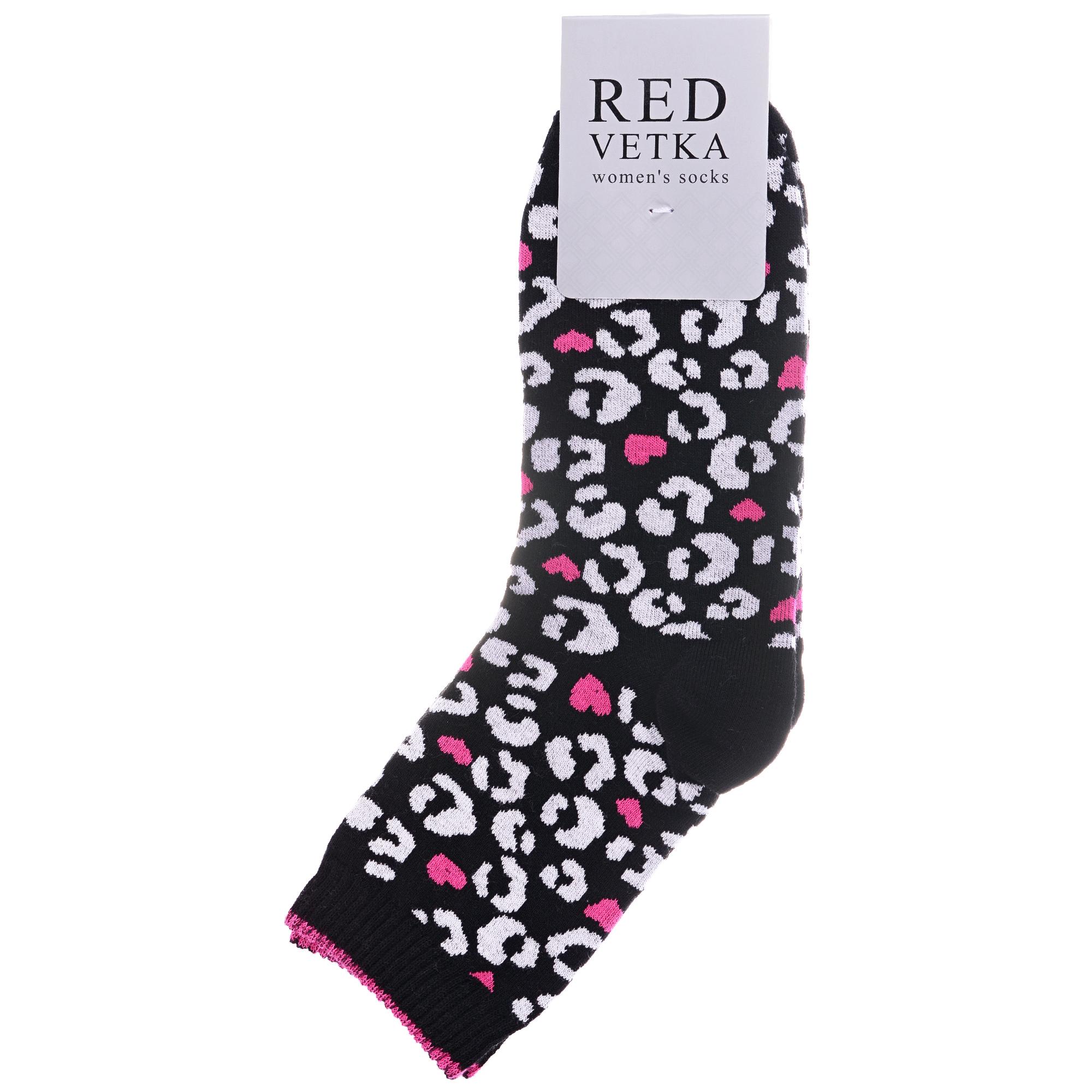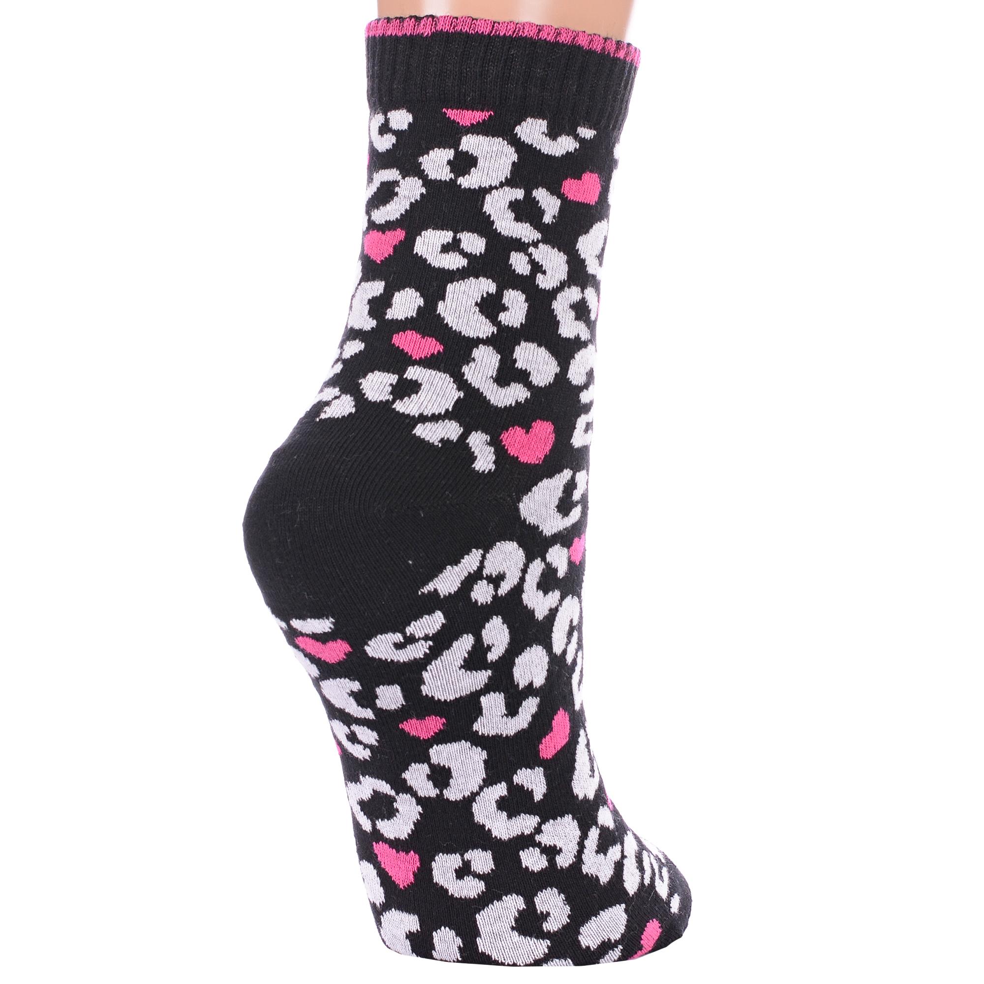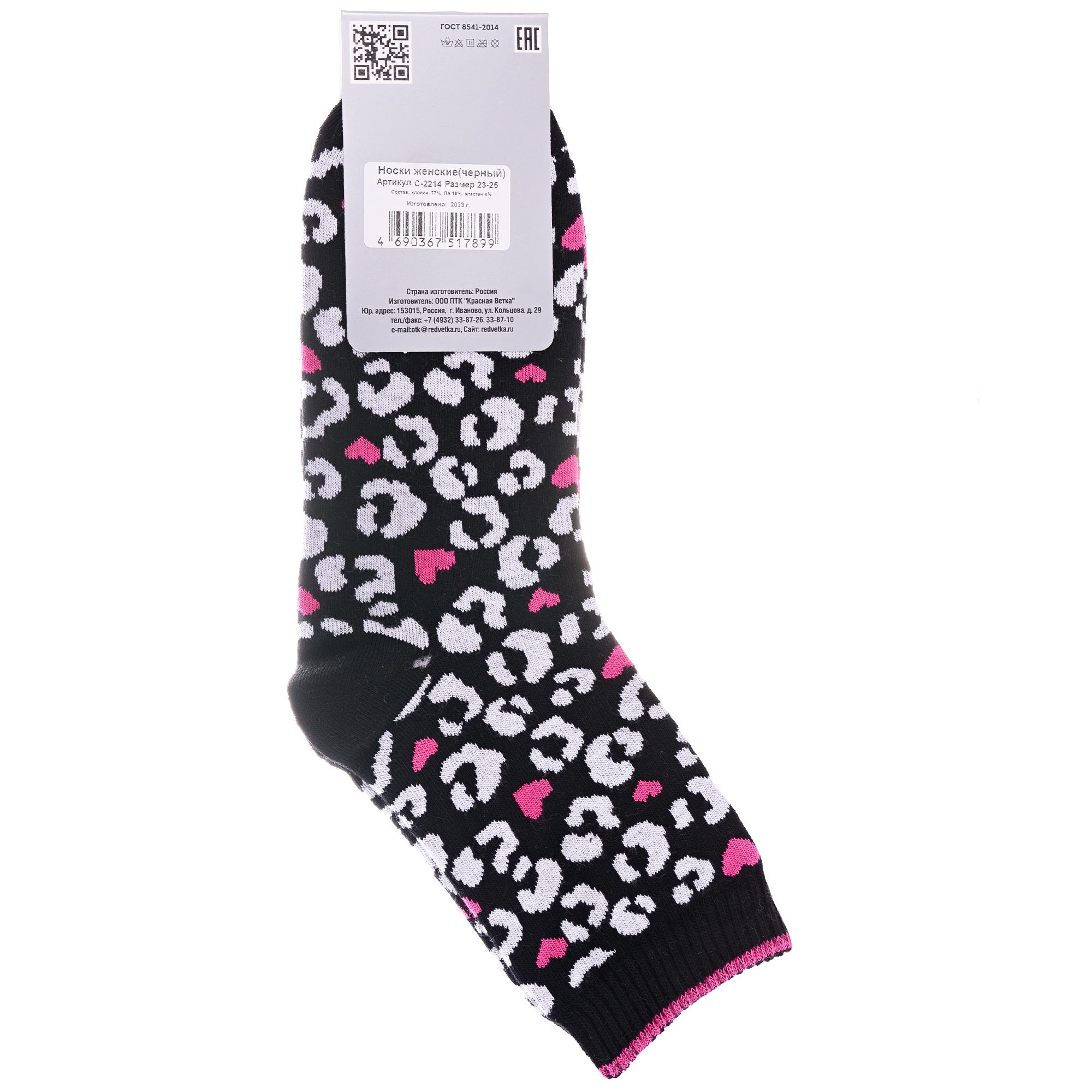 Круглогодичные укороченные женские носки, цвет черный, спортивные, повседневные, возможно бесшовные, принт (рисунок): сердечки / поцелуи / любовь, леопардовый, с узором, состав: 77% хлопок, 19% полиамид, 4% эластан, арт. С-2214. Производитель «КРАСНАЯ ВЕТКА» Россия под брендом «Красная ветка».