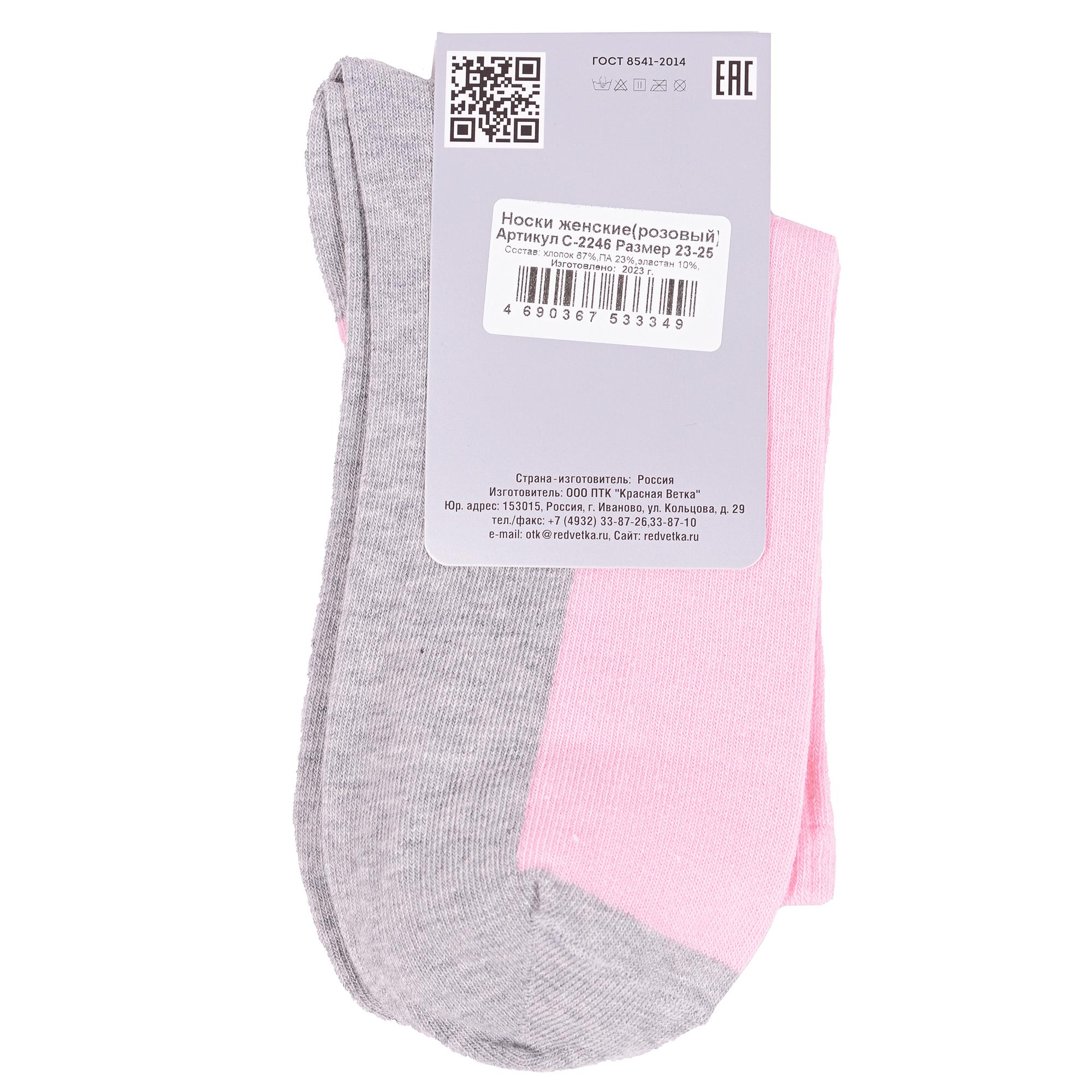 Круглогодичные укороченные женские носки, цвет розовый, спортивные, возможно бесшовные, принт (рисунок): контрастные пятка / мысок / резинка, в рубчик, без рисунков/узоров, состав: 67% хлопок, 23% полиамид, 10% эластан, арт. С-2246. Производитель «КРАСНАЯ ВЕТКА» Россия под брендом «Красная ветка».