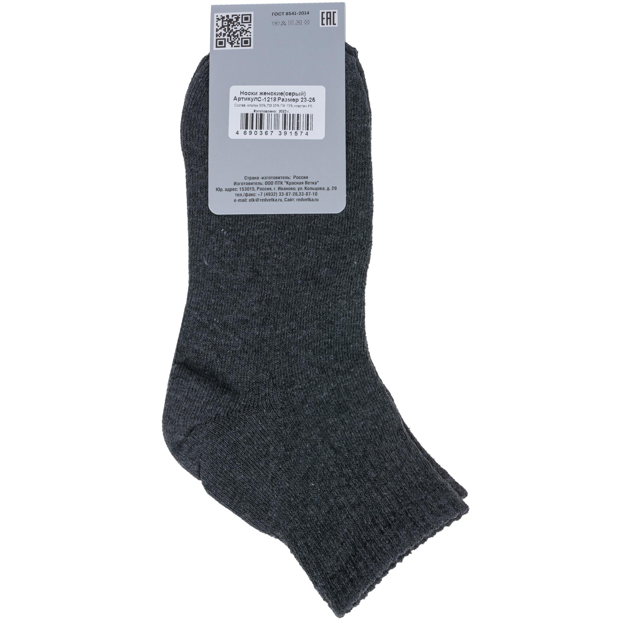 Круглогодичные укороченные женские носки, цвет серый, спортивные, возможно бесшовные, принт (рисунок): в рубчик, однотонный, без рисунков/узоров, состав: 50% хлопок, 33% полиэстер, 13% полиамид, 4% эластан, арт. С-1218. Производитель «КРАСНАЯ ВЕТКА» Россия под брендом «Красная ветка».