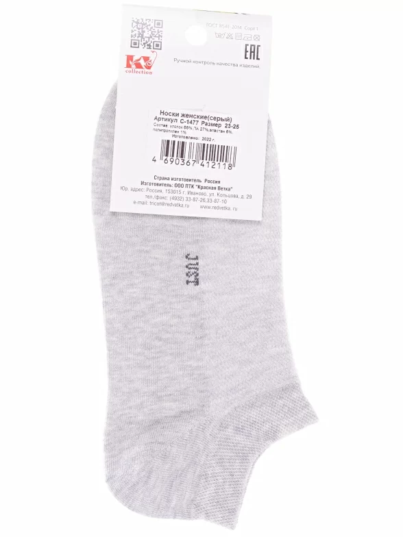 Круглогодичные короткие женские носки, цвет серый, спортивные, в сеточку, возможно бесшовные, принт (рисунок): однотонный, без рисунков/узоров, состав: 66% хлопок, 27% полиамид, 6% эластан, 1% полипропилен, арт. С-1477. Производитель «КРАСНАЯ ВЕТКА» Россия под брендом «Красная ветка».