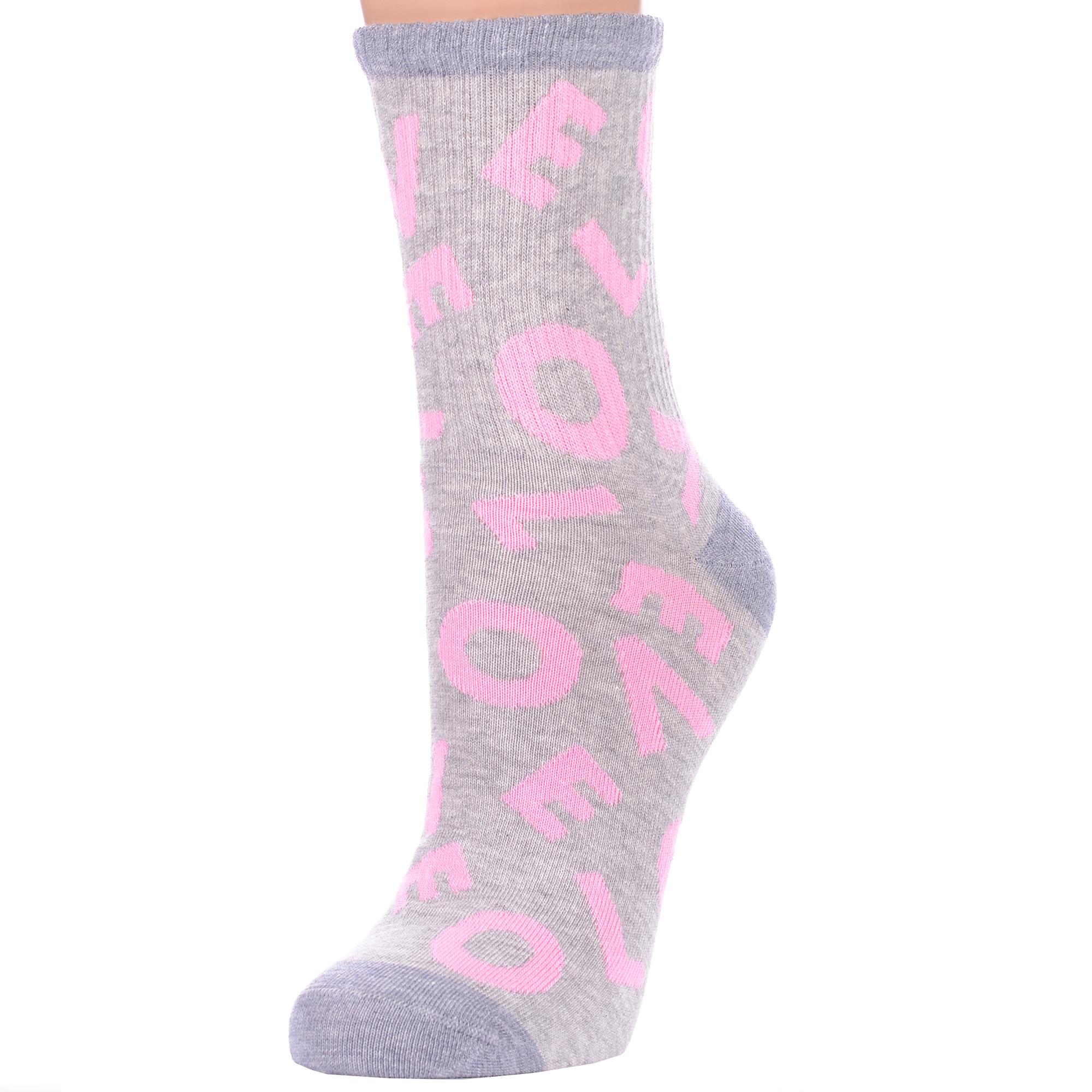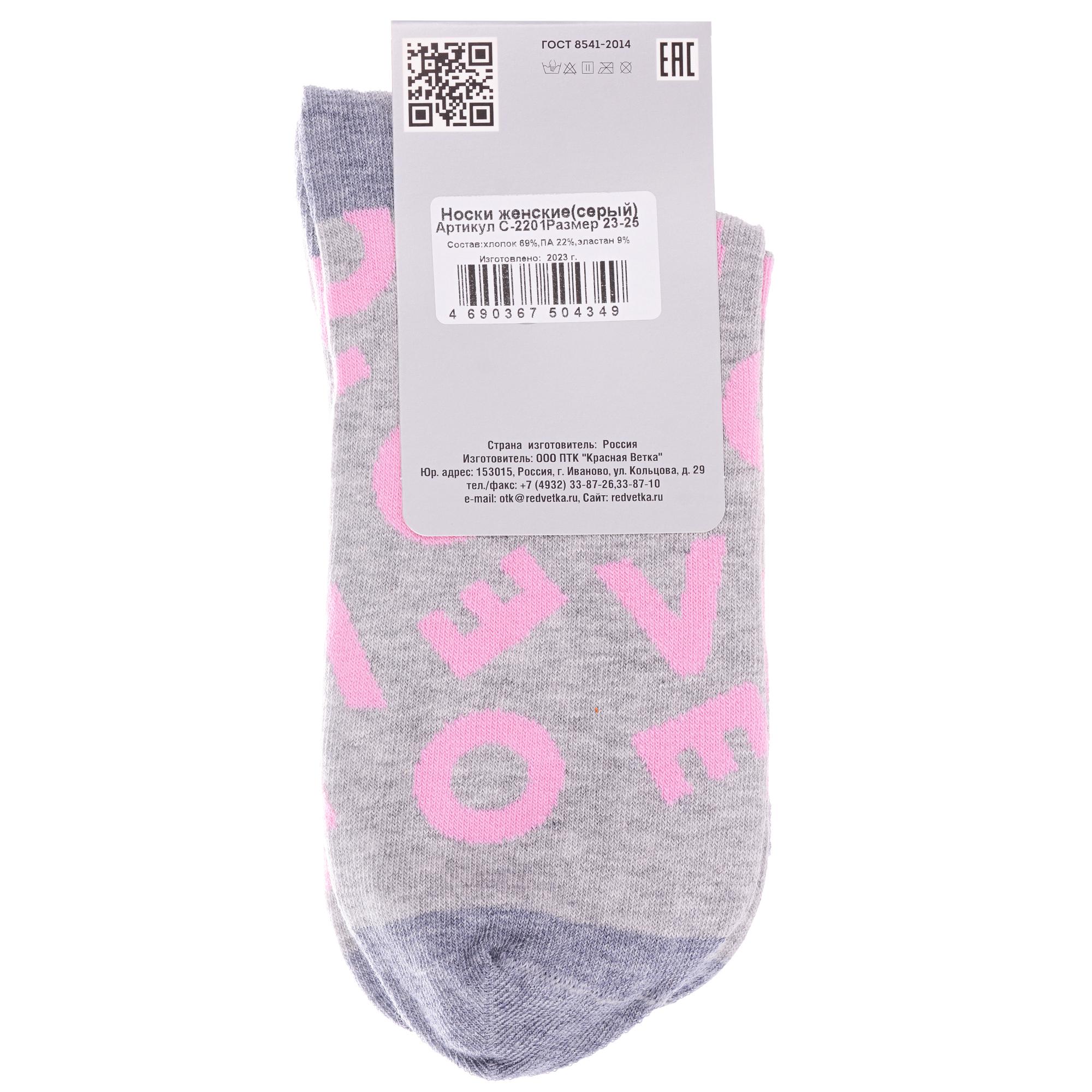 Круглогодичные средней длины женские носки, цвет серый, спортивные, повседневные, возможно бесшовные, принт (рисунок): сердечки / поцелуи / любовь, надписи, контрастные пятка / мысок / резинка, в рубчик, с узором, крупные контрастные рисунки, состав: 69% хлопок, 22% полиамид, 9% эластан, арт. С-2201. Производитель «КРАСНАЯ ВЕТКА» Россия под брендом «Красная ветка».