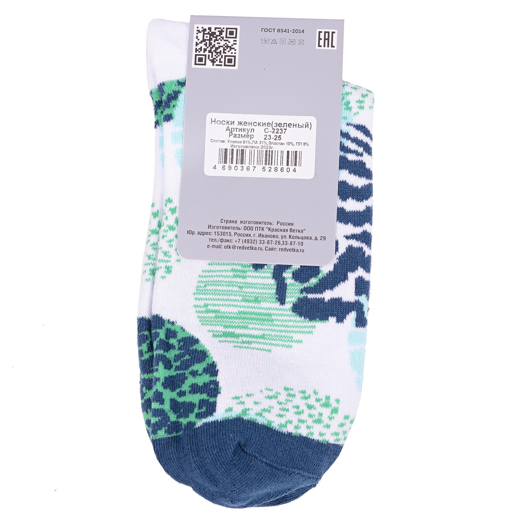 Круглогодичные средней длины женские носки, цвет многоцветные (мультиколор)-зеленый, спортивные, повседневные, возможно бесшовные, принт (рисунок): в рубчик, абстрактный, с узором, крупные контрастные рисунки, состав: 61% хлопок, 21% полиамид, 10% эластан, 8% полипропилен, арт. С-2237. Производитель «КРАСНАЯ ВЕТКА» Россия под брендом «Красная ветка».