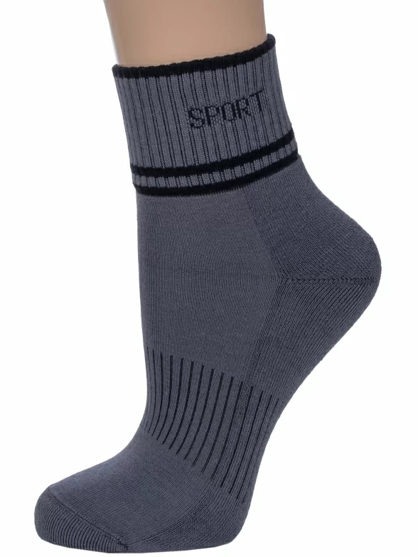 Круглогодичные укороченные женские носки, цвет серый, спортивные, с махровым следом, шов обычный (не бесшовные), принт (рисунок): спортивные, с узором, состав: 85% хлопок, 10% полиамид, 5% эластан (лайкра), арт. С25М. Производитель «ИП Мурзаков В.А., Ставропольский край, Россия» под брендом «Lorenzline».