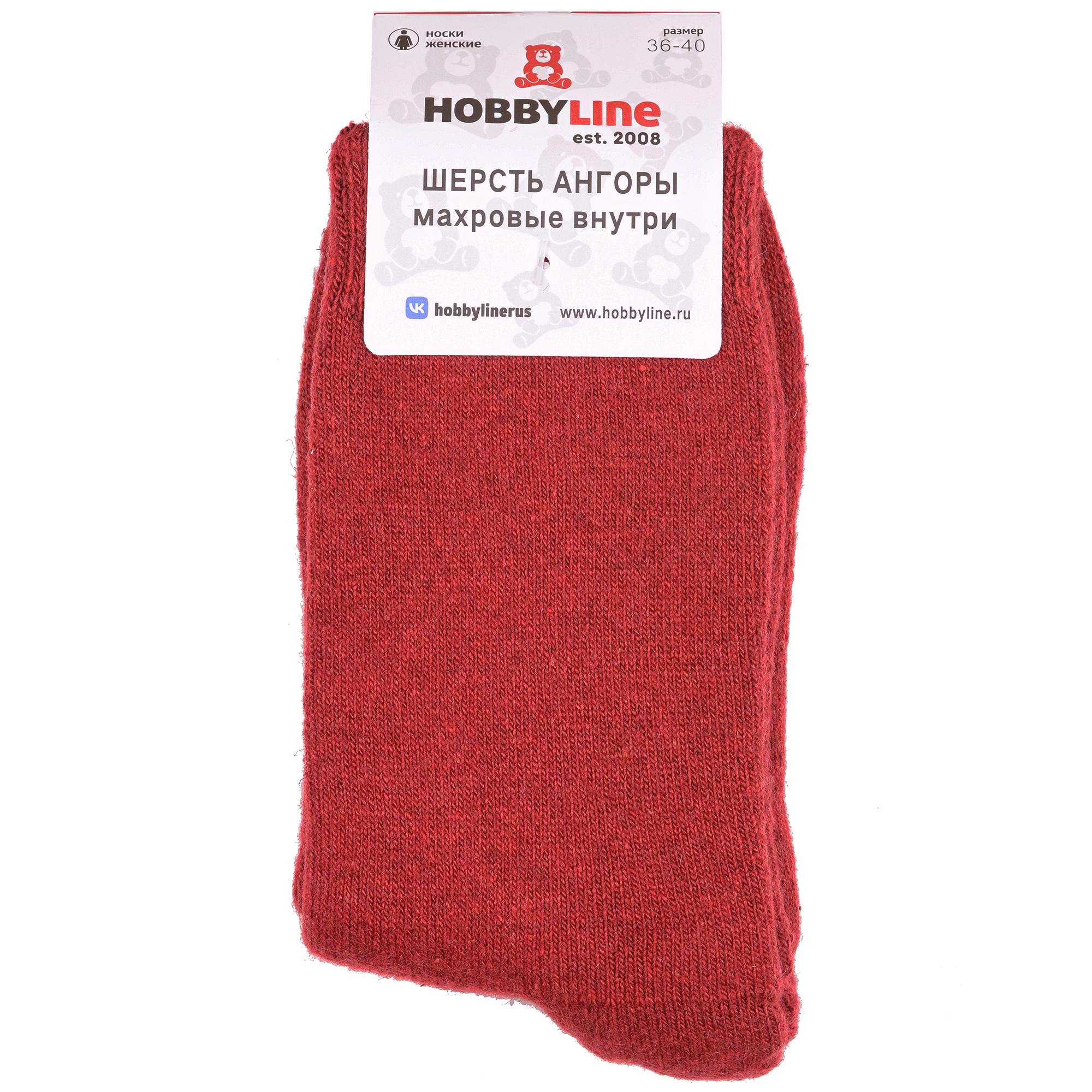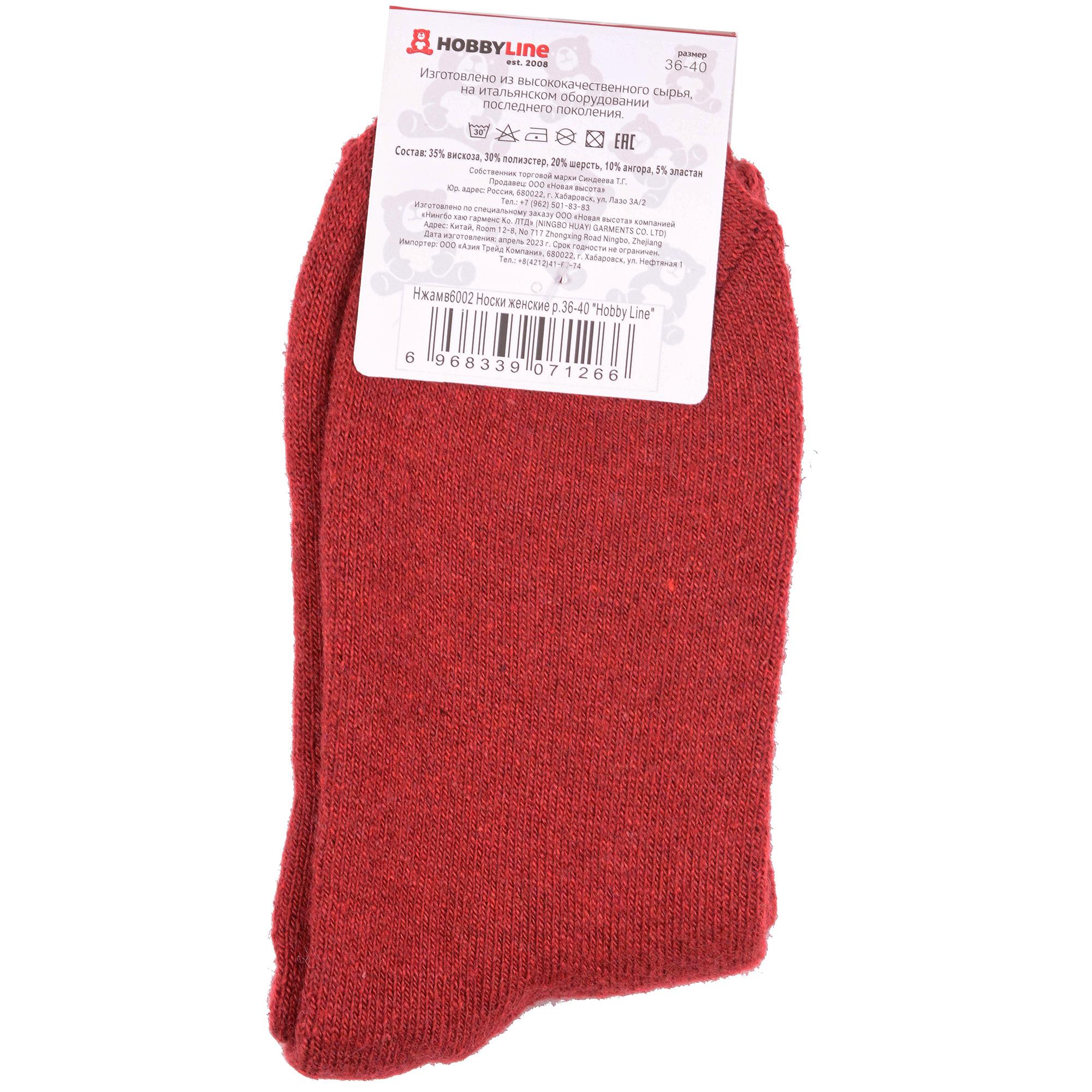 Зимние средней длины женские носки, цвет бордовый, теплые, махровые, классические, состав: 35% вискоза, 20% шерсть, 10% ангора, 30% полиэстер, 5% эластан, арт. Нжамв6002. Производитель «Китай, страна бренда - Россия» под брендом «Hobby line».