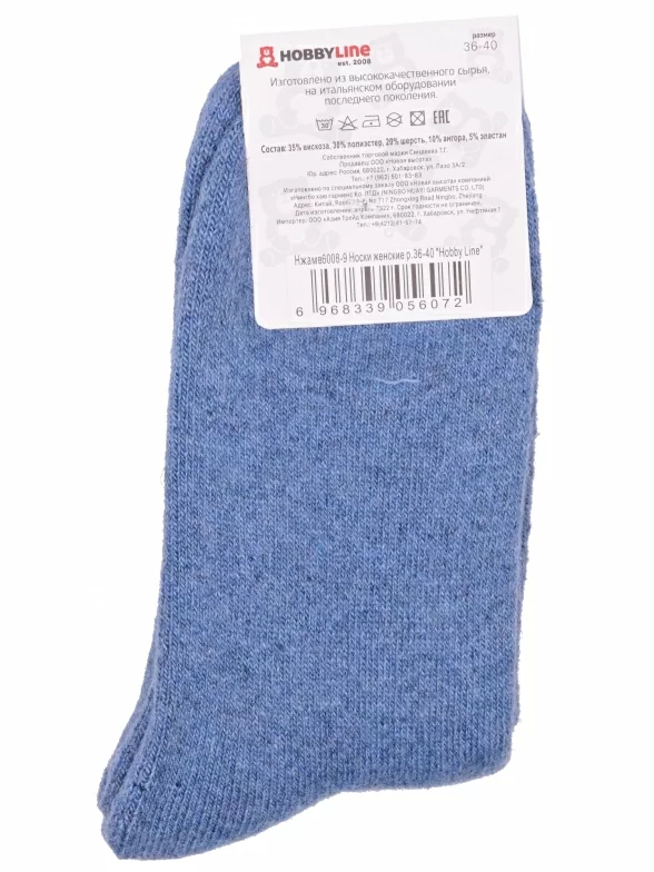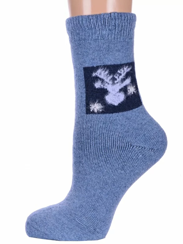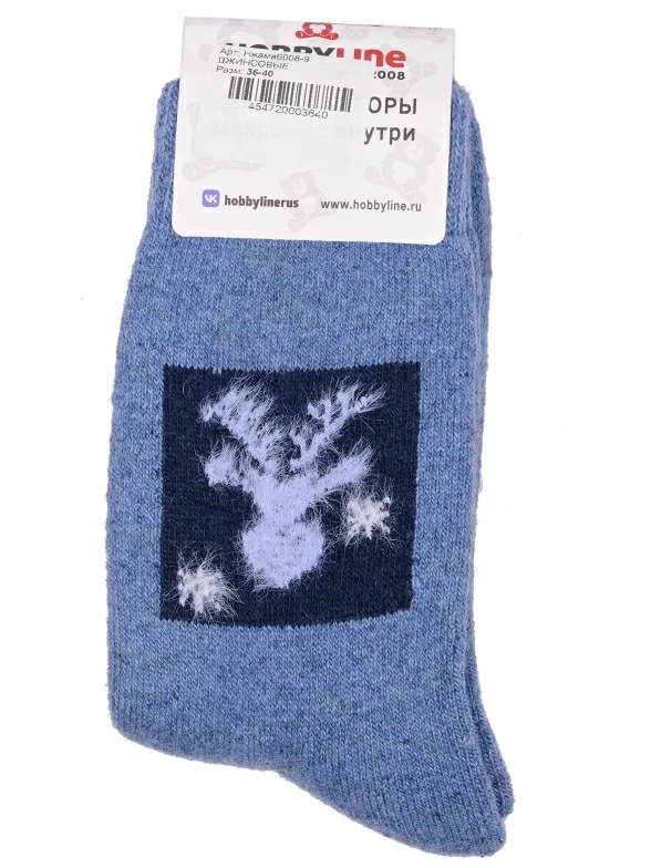 Зимние средней длины женские носки, цвет джинс, теплые, повседневные, махровые, шов обычный (не бесшовные), принт (рисунок): пушистый, новый год, животные, с узором, состав: 35% вискоза, 20% шерсть, 10% ангора, 30% полиэстер, 5% эластан, арт. Нжамв6008-9. Производитель «Китай, страна бренда - Россия» под брендом «Hobby line».