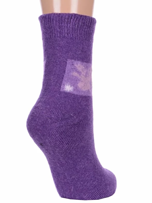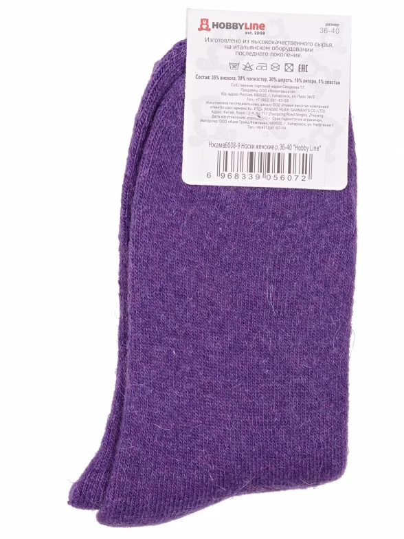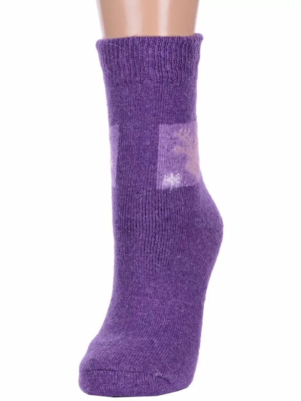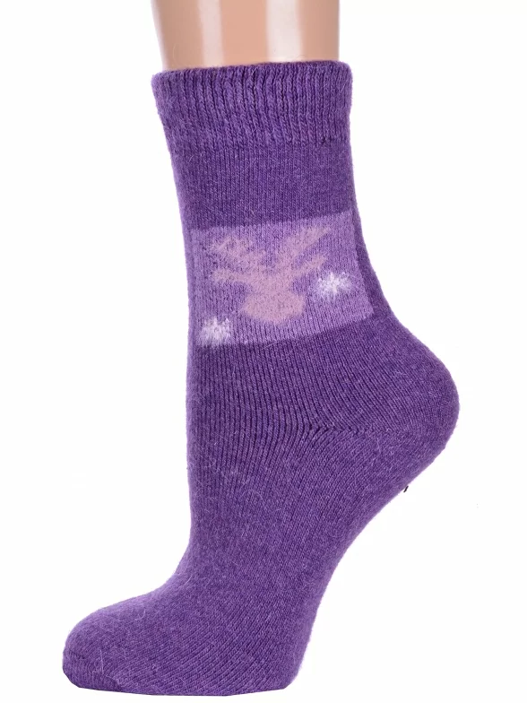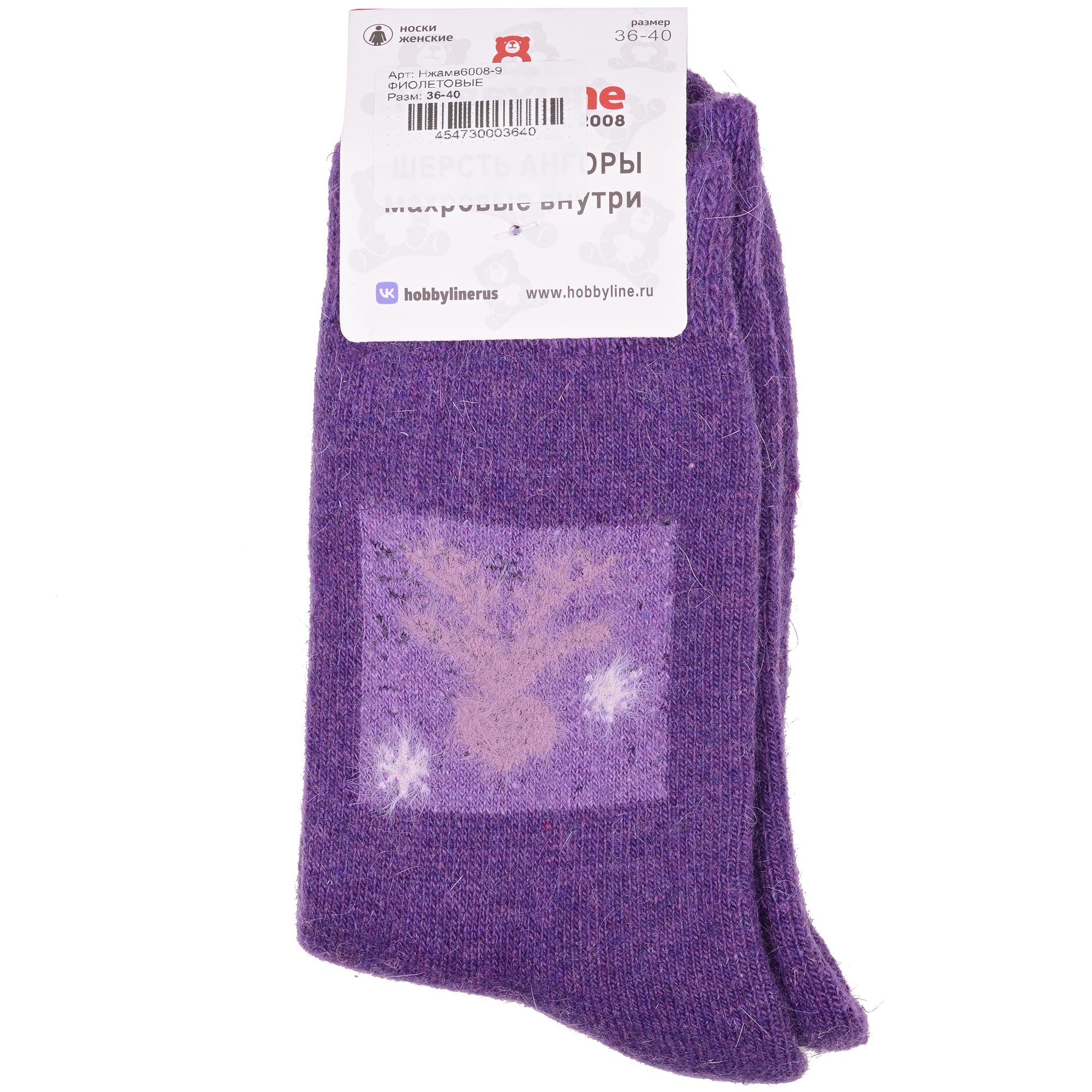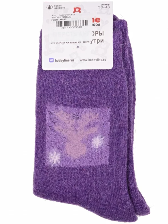 Зимние средней длины женские носки, цвет фиолетовый, теплые, повседневные, махровые, шов обычный (не бесшовные), принт (рисунок): пушистый, новый год, животные, с узором, состав: 35% вискоза, 20% шерсть, 10% ангора, 30% полиэстер, 5% эластан, арт. Нжамв6008-9. Производитель «Китай, страна бренда - Россия» под брендом «Hobby line».