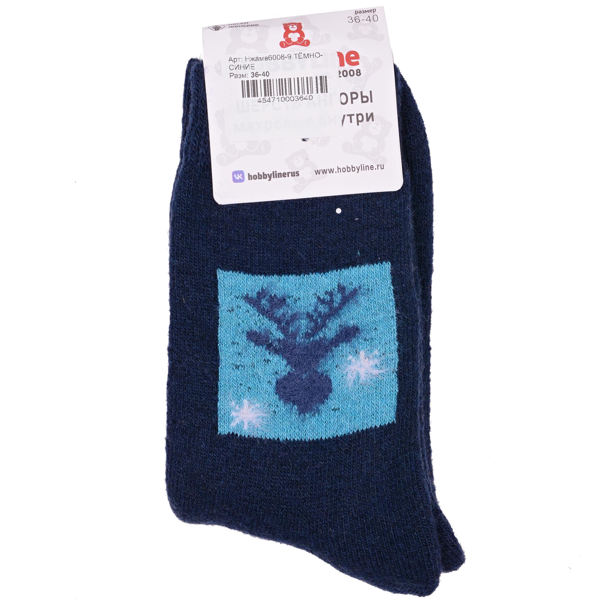 Зимние средней длины женские носки, цвет темно-синий, махровые, теплые, повседневные, шов обычный (не бесшовные), принт (рисунок): пушистый, животные, с узором, состав: 35% вискоза, 20% шерсть, 10% ангора, 30% полиэстер, 5% эластан, арт. Нжамв6008-9. Производитель «Китай, страна бренда - Россия» под брендом «Hobby line».
