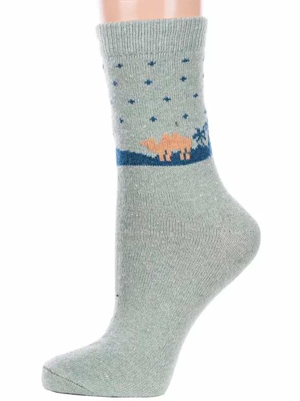 Зимние средней длины женские носки, цвет бирюзовый, теплые, повседневные, шов обычный (не бесшовные), принт (рисунок): животные, с узором, состав: 35% вискоза, 20% шерсть, 10% ангора, 30% полиэстер, 5% эластан, арт. Нжа6536-6. Производитель «Китай, страна бренда - Россия» под брендом «Hobby line».