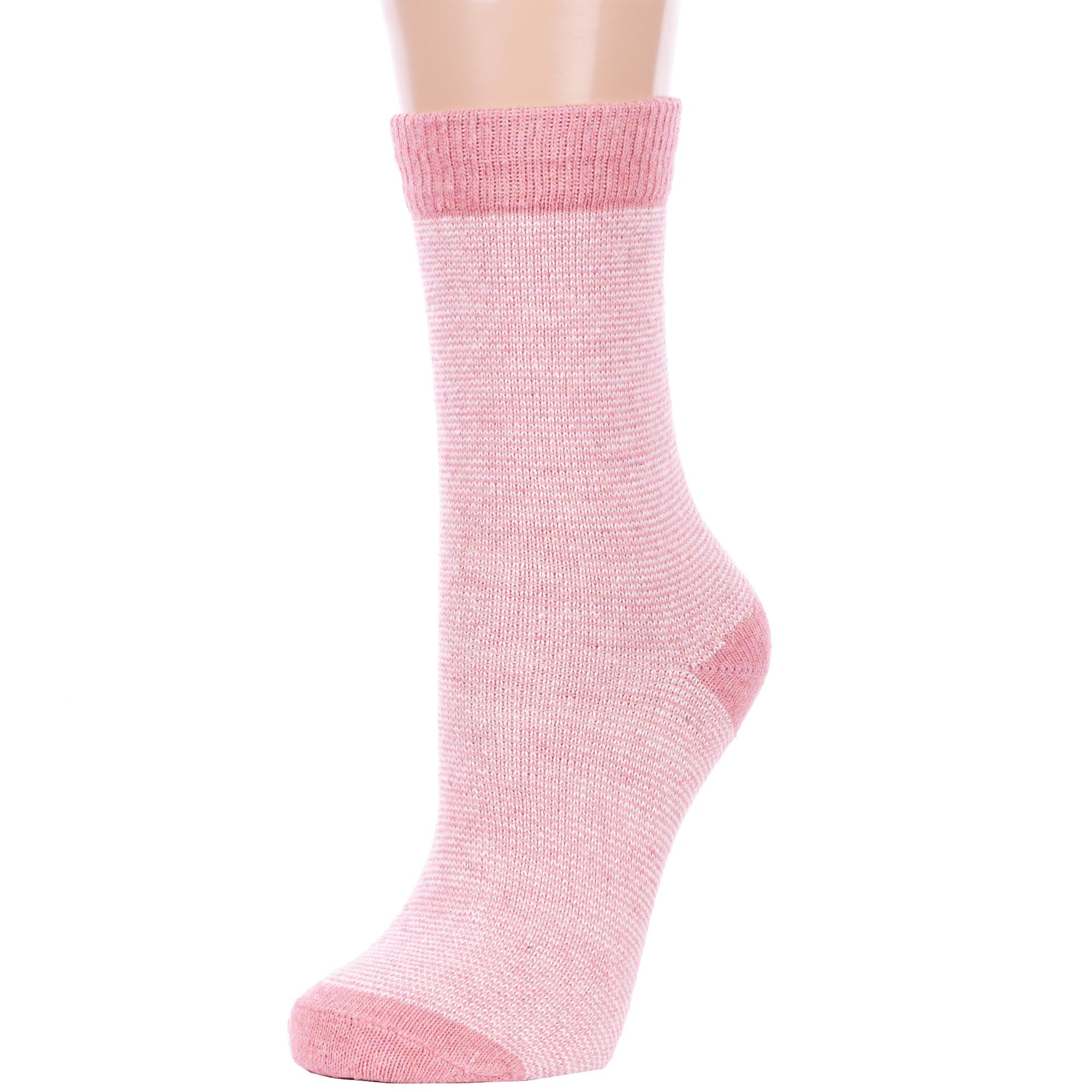 Зимние средней длины женские носки, цвет розовый, теплые, повседневные, шов обычный (не бесшовные), принт (рисунок): полоски, контрастные пятка / мысок / резинка, с узором, состав: 35% вискоза, 20% шерсть, 10% ангора, 30% полиэстер, 5% эластан, арт. Нжа6548. Производитель «Китай, страна бренда - Россия» под брендом «Hobby line».