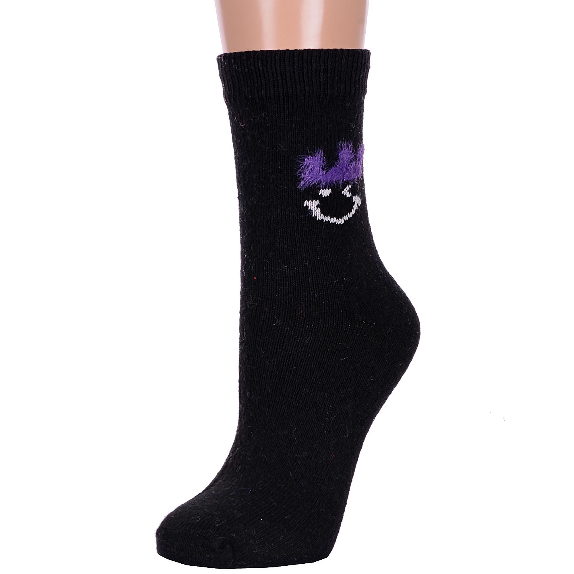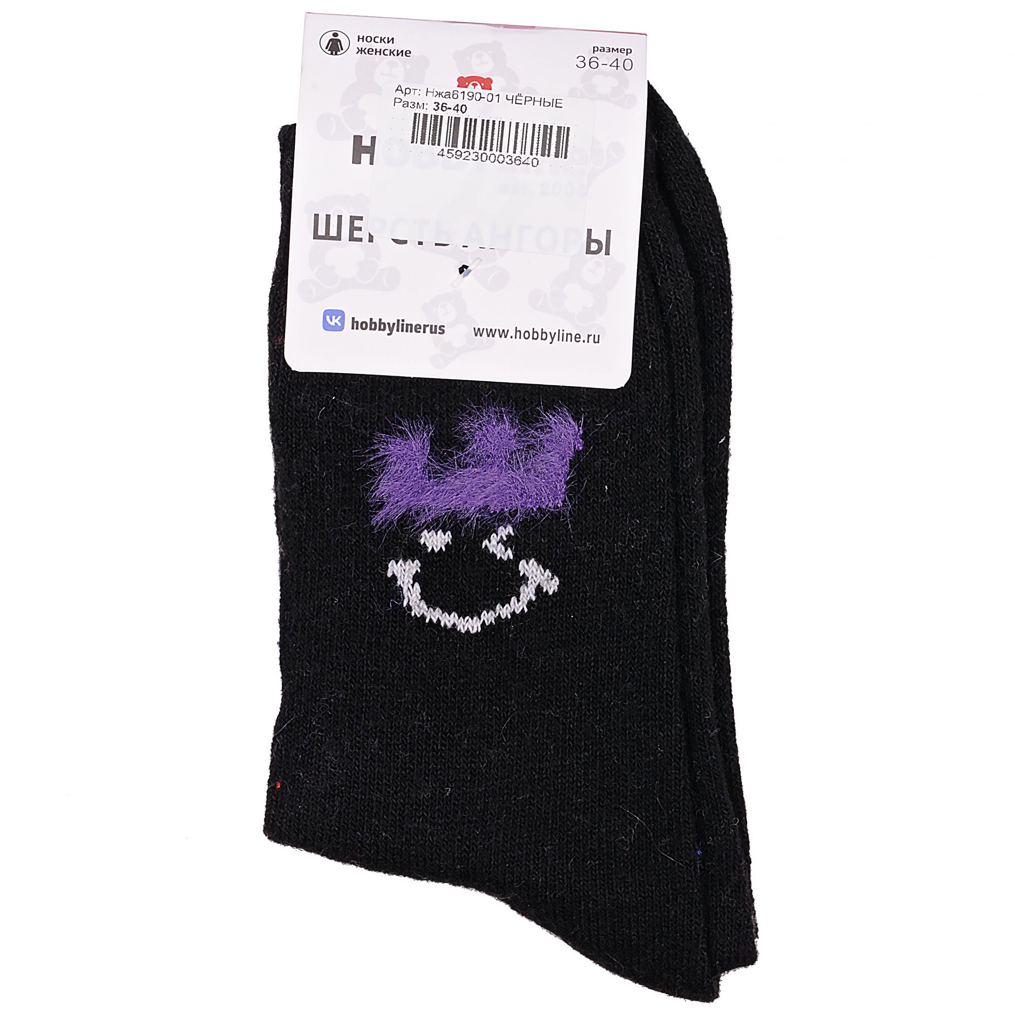Зимние укороченные женские носки, цвет черный, теплые, повседневные, шов обычный (не бесшовные), принт (рисунок): с узором, состав: 35% вискоза, 20% шерсть, 10% ангора, 30% полиэстер, 5% эластан, арт. Нжа6190-01. Производитель «Китай, страна бренда - Россия» под брендом «Hobby line».