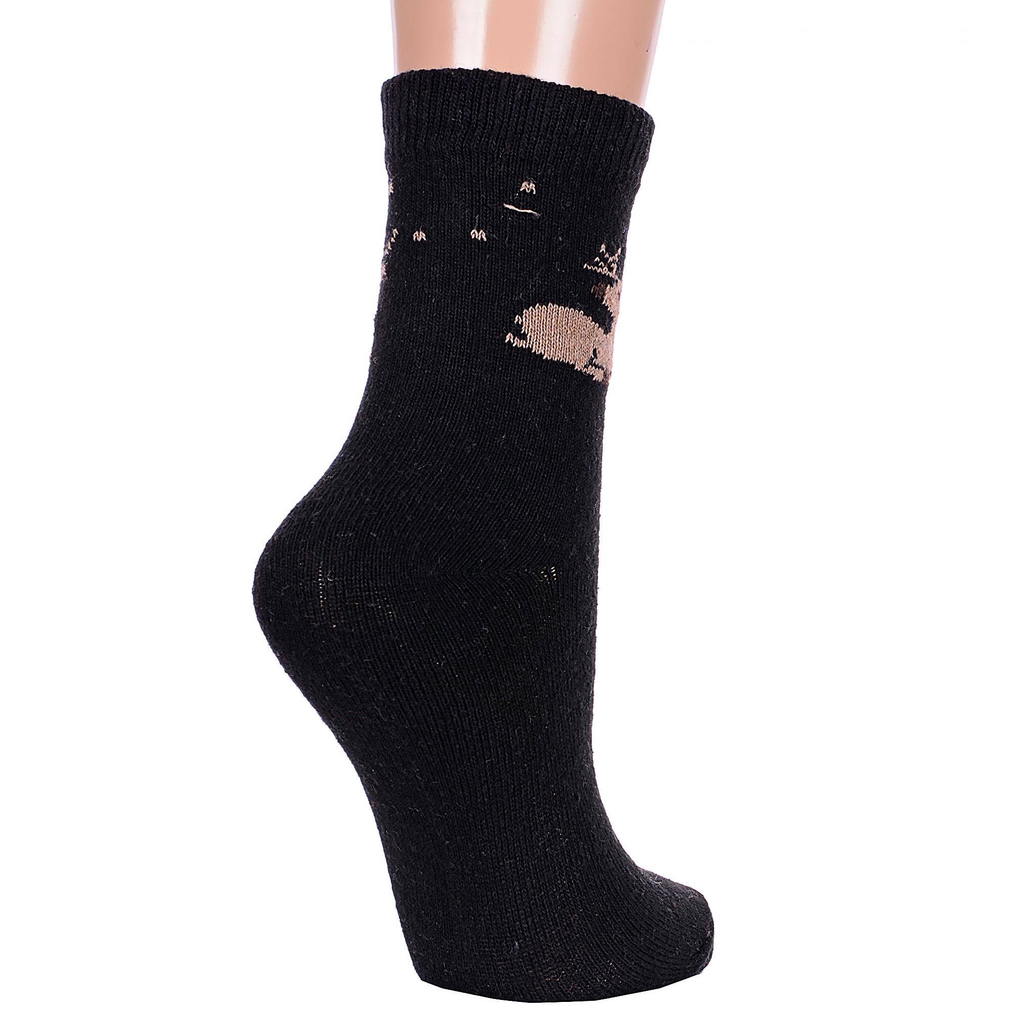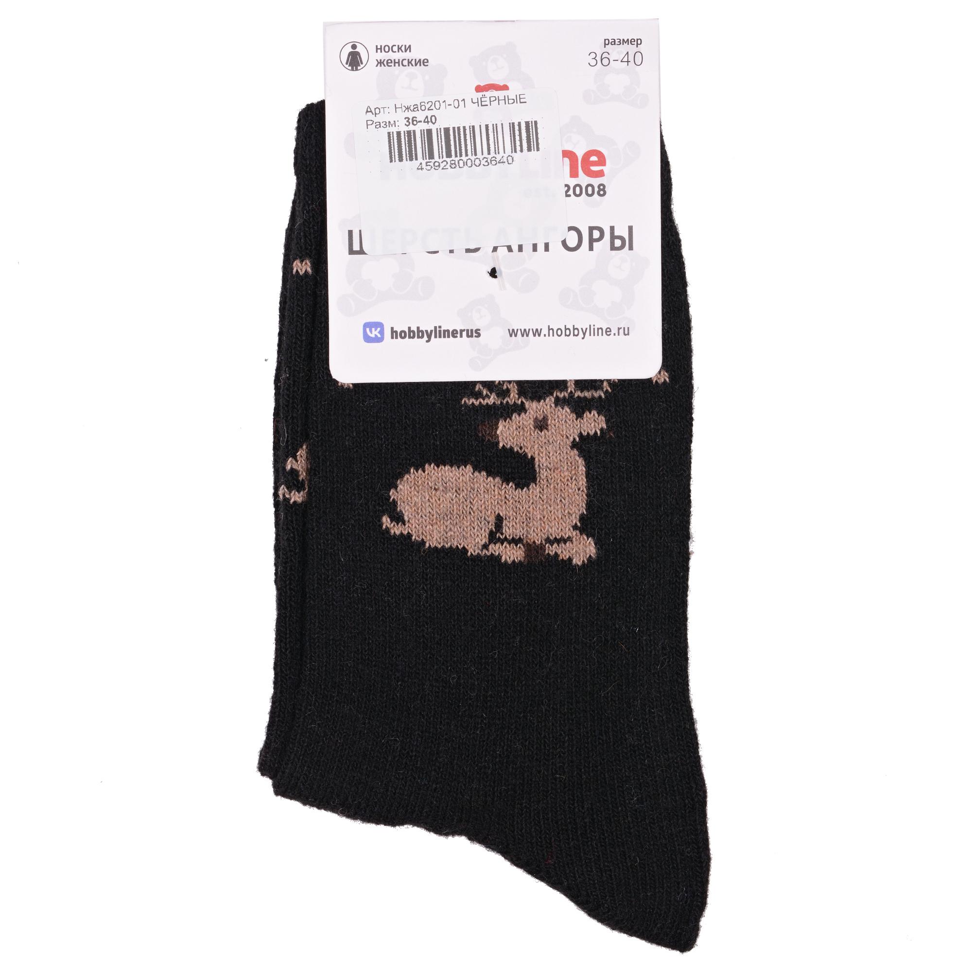 Зимние укороченные женские носки, цвет черный, теплые, повседневные, шов обычный (не бесшовные), принт (рисунок): новый год, животные, с узором, состав: 35% вискоза, 20% шерсть, 10% ангора, 30% полиэстер, 5% эластан, арт. Нжа6201-01. Производитель «Китай, страна бренда - Россия» под брендом «Hobby line».