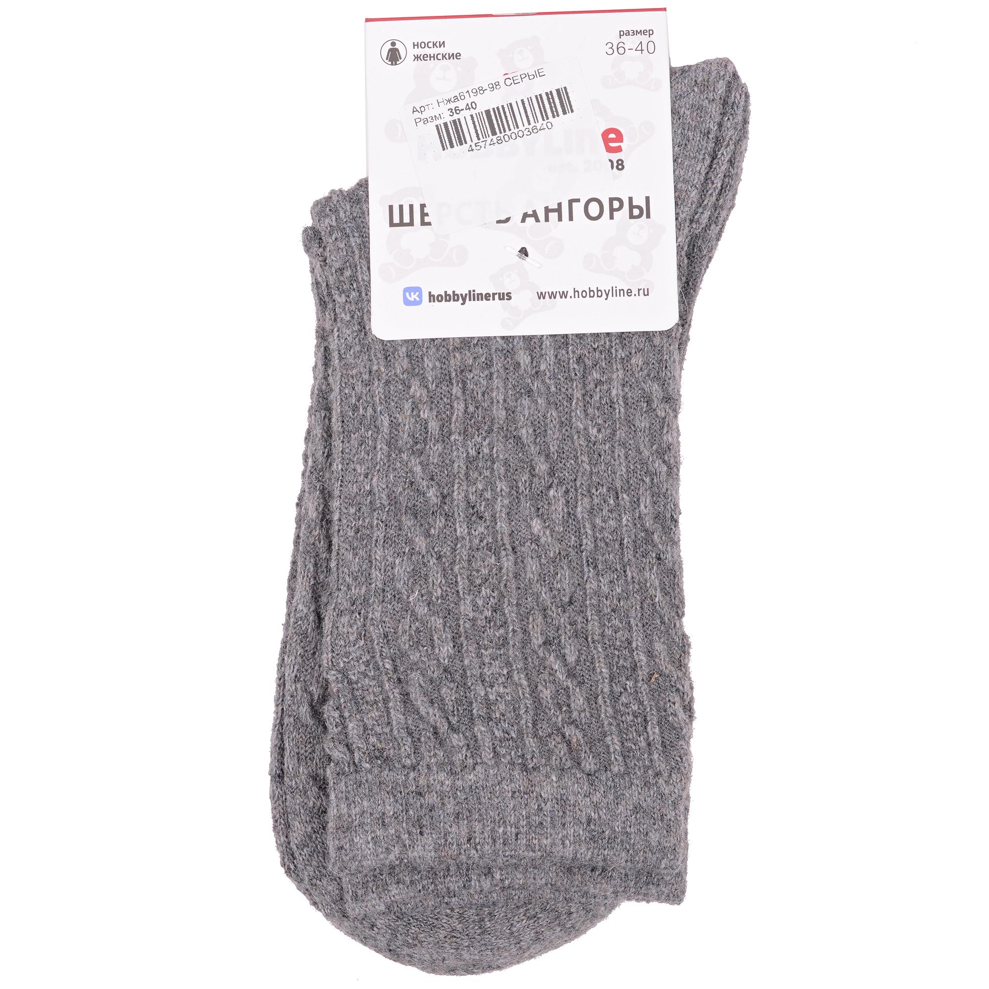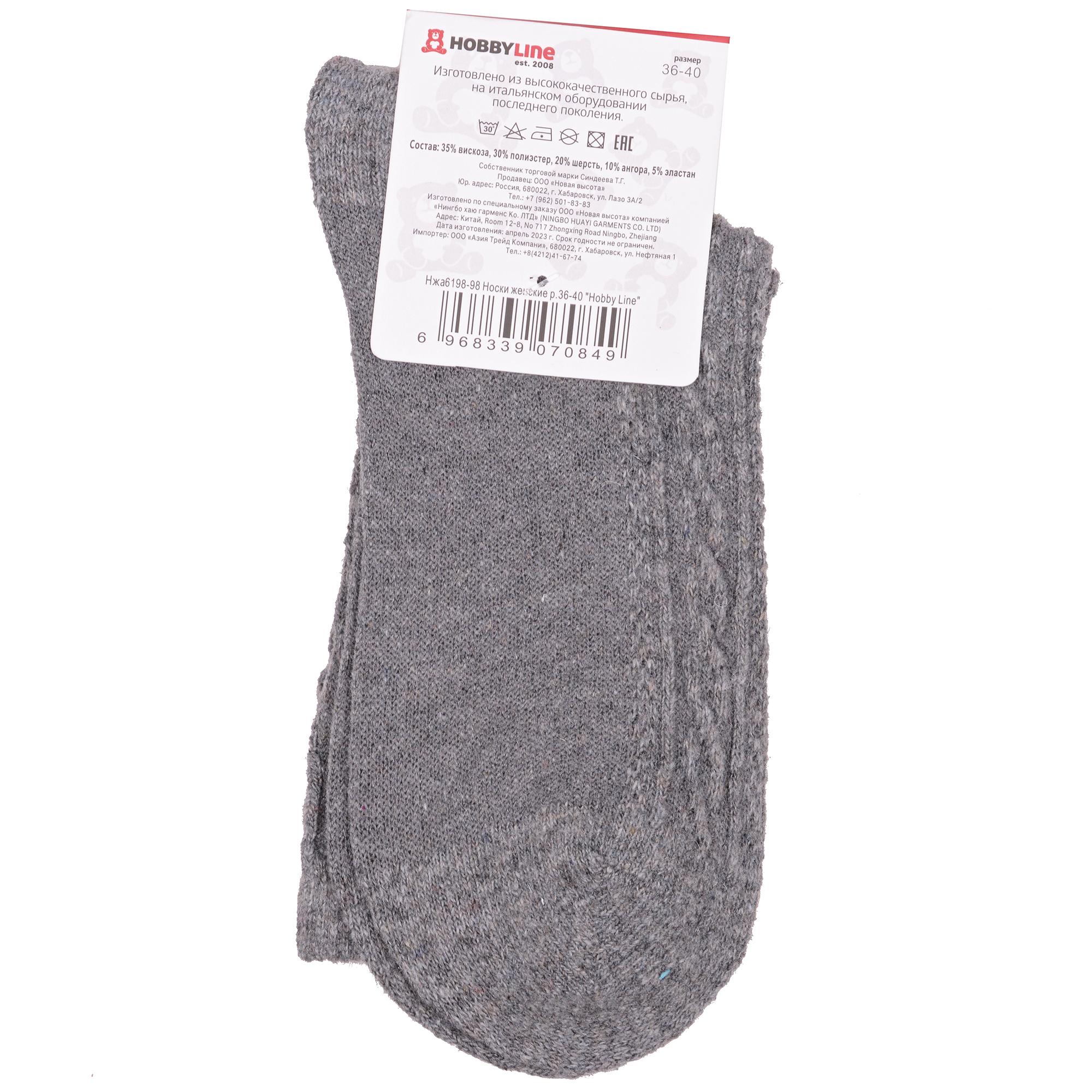 Зимние средней длины женские носки, цвет серый, теплые, шов обычный (не бесшовные), принт (рисунок): с узором, однотонный, состав: 35% вискоза, 20% шерсть, 10% ангора, 30% полиэстер, 5% эластан, арт. Нжа6198-98. Производитель «Китай, страна бренда - Россия» под брендом «Hobby line».