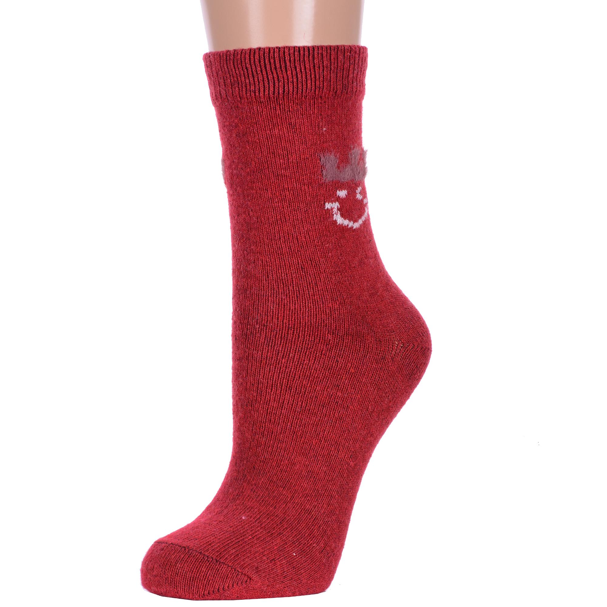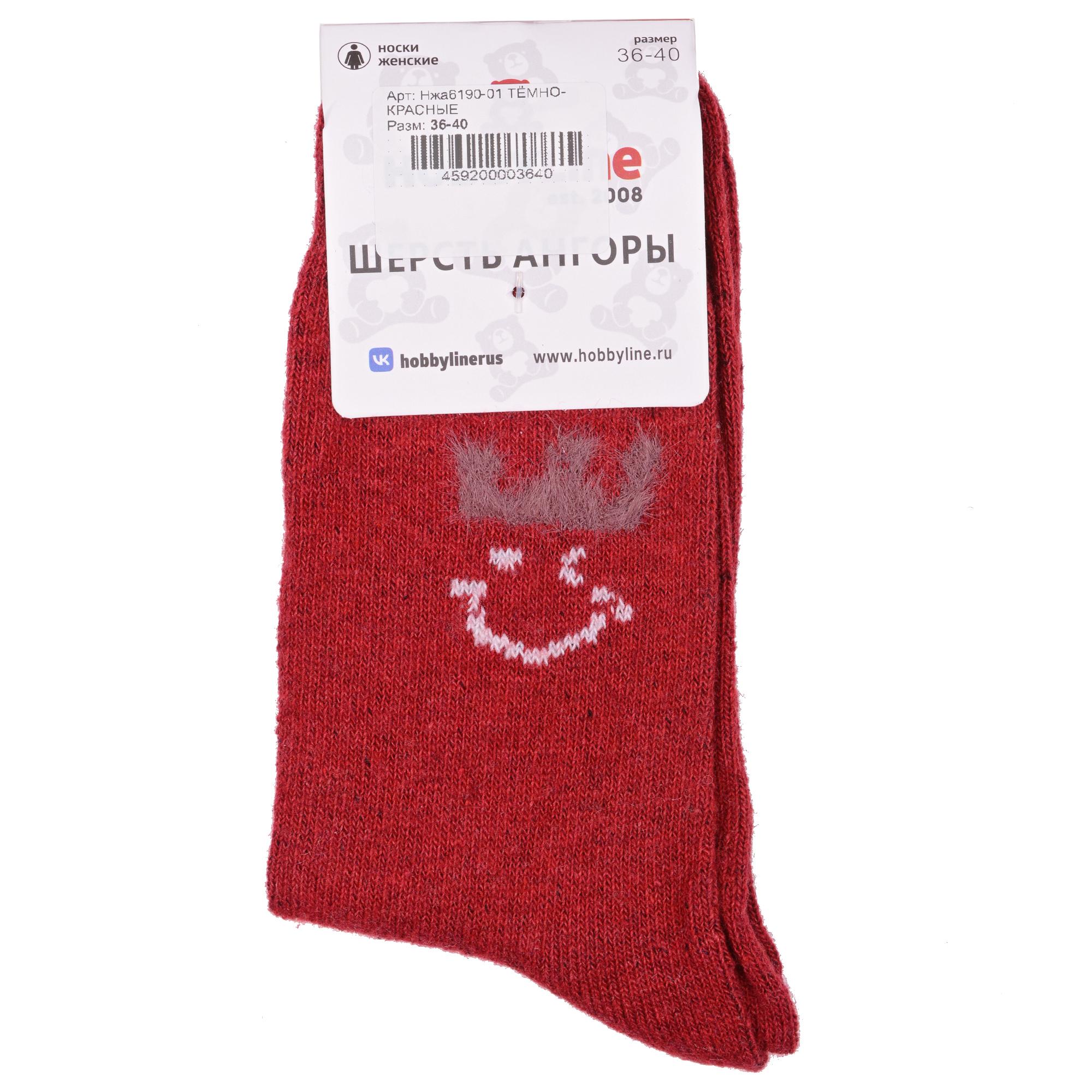 Зимние укороченные женские носки, цвет красный, теплые, повседневные, шов обычный (не бесшовные), принт (рисунок): с узором, состав: 35% вискоза, 20% шерсть, 10% ангора, 30% полиэстер, 5% эластан, арт. Нжа6190-01. Производитель «Китай, страна бренда - Россия» под брендом «Hobby line».