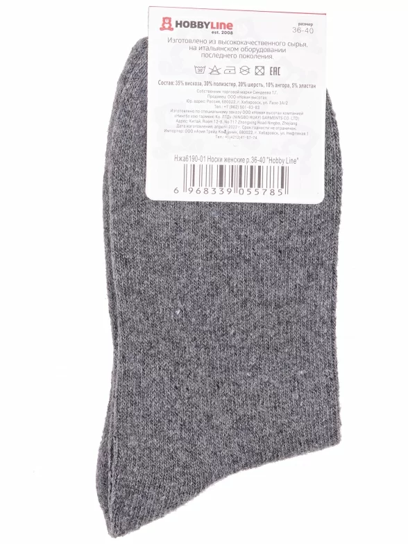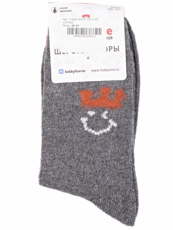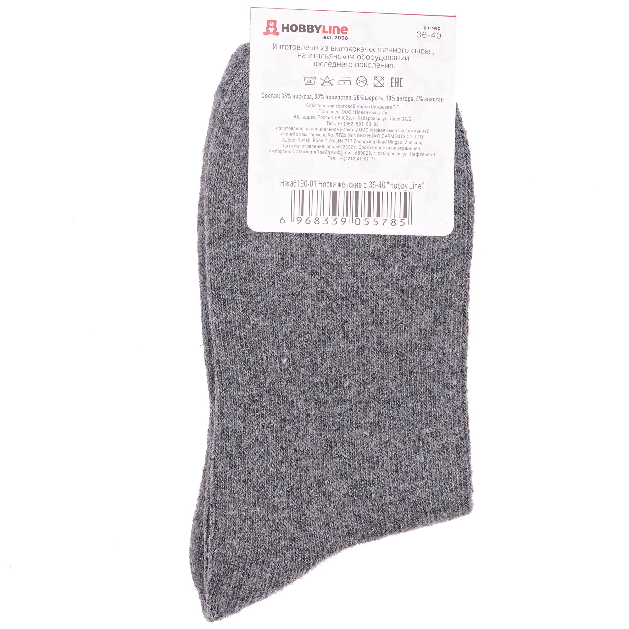 Зимние средней длины женские носки, цвет темно-серый, теплые, повседневные, шов обычный (не бесшовные), принт (рисунок): мелкий принт, небольшой рисунок, состав: 35% вискоза, 20% шерсть, 10% ангора, 30% полиэстер, 5% эластан, арт. Нжа6190-01. Производитель «Китай, страна бренда - Россия» под брендом «Hobby line».