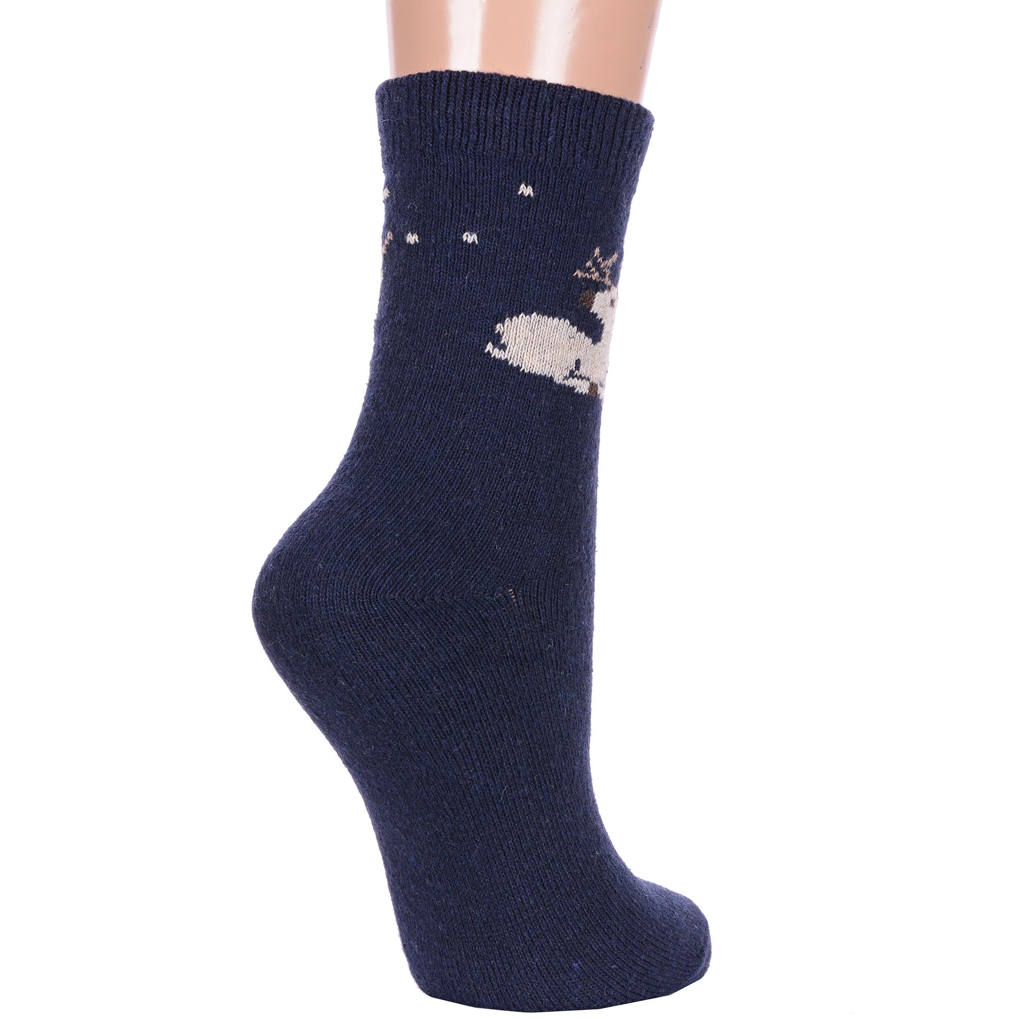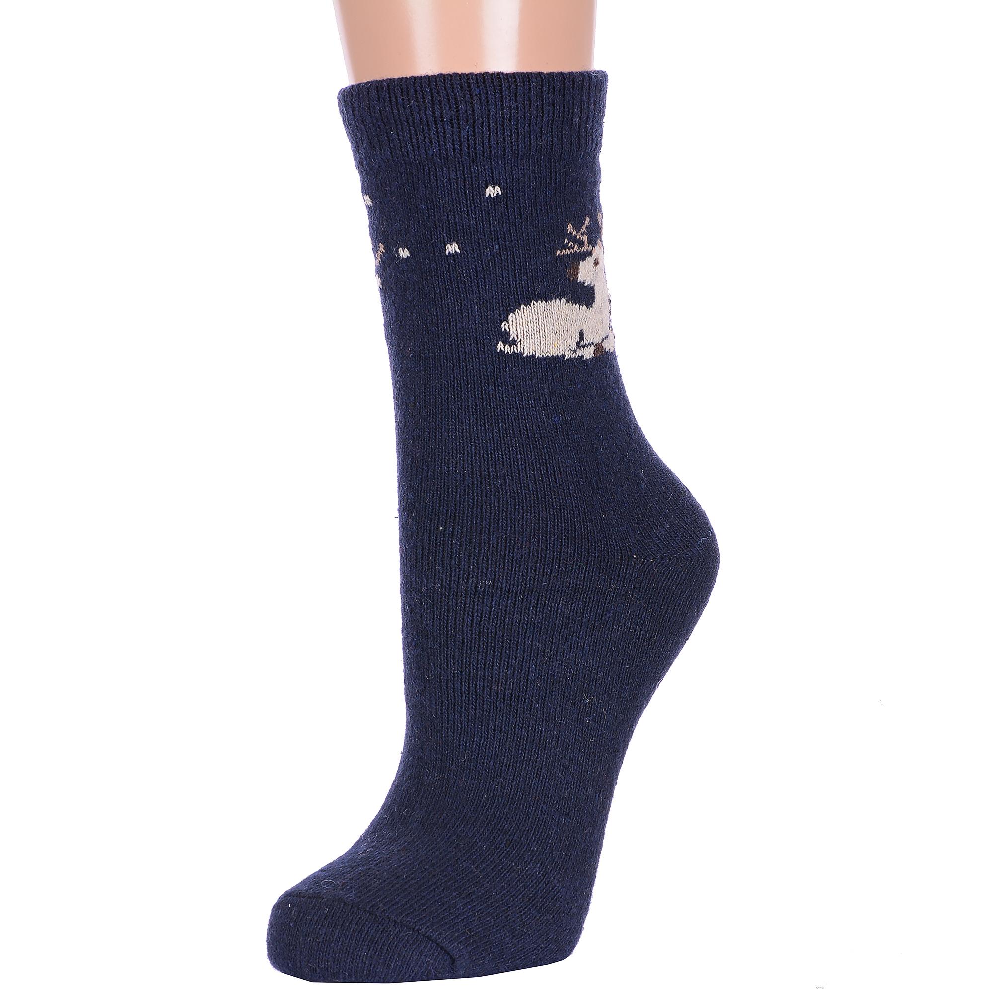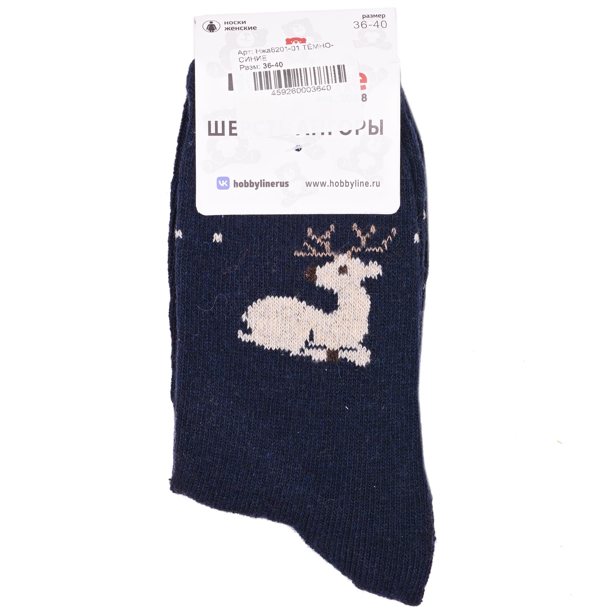 Зимние укороченные женские носки, цвет темно-синий, теплые, повседневные, шов обычный (не бесшовные), принт (рисунок): новый год, зимний, животные, с узором, состав: 35% вискоза, 20% шерсть, 10% ангора, 30% полиэстер, 5% эластан, арт. Нжа6201-01. Производитель «Китай, страна бренда - Россия» под брендом «Hobby line».