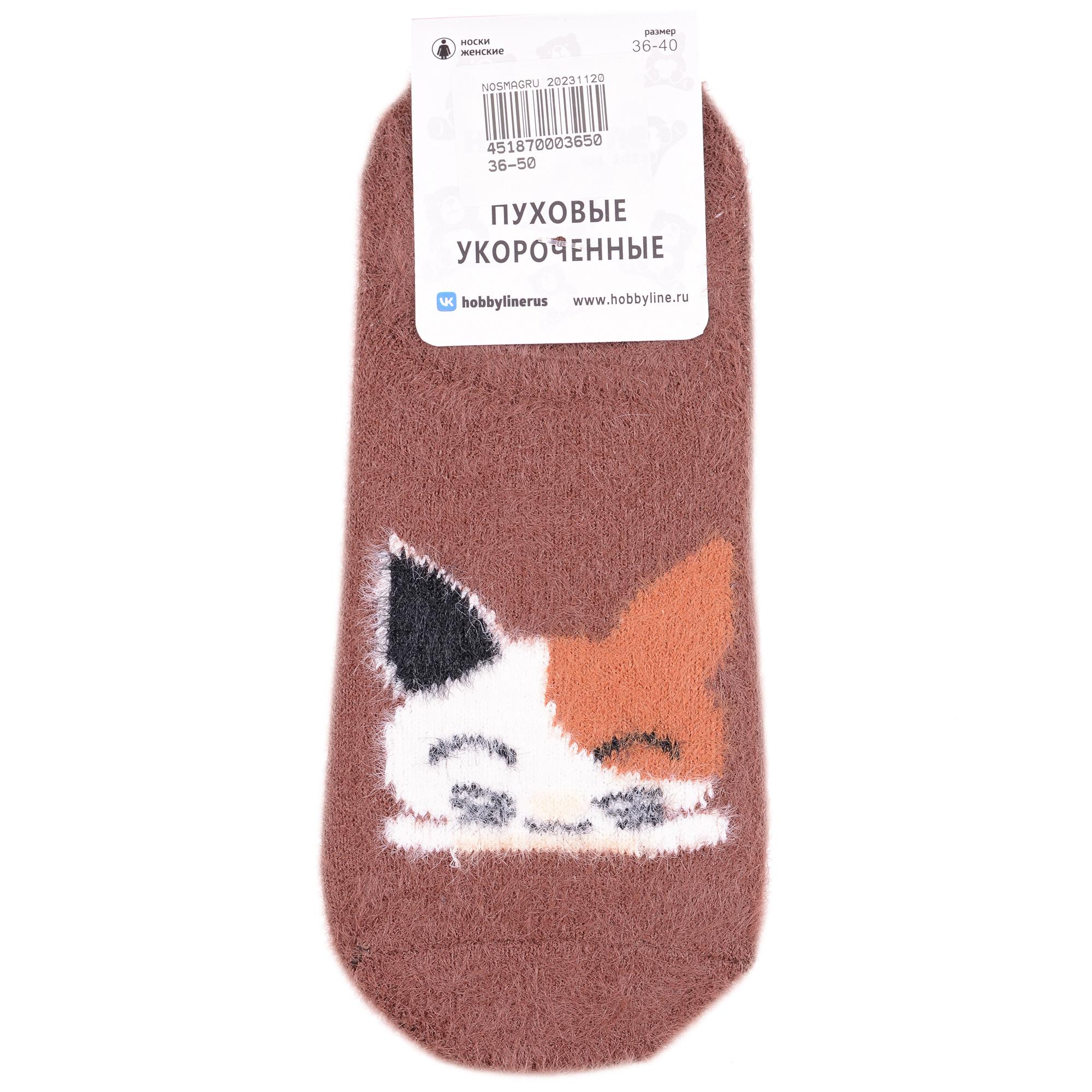 Женские ультракороткие теплые носки "Пуховые" Hobby Line Нжпуху9502, КОРИЧНЕВЫЕ