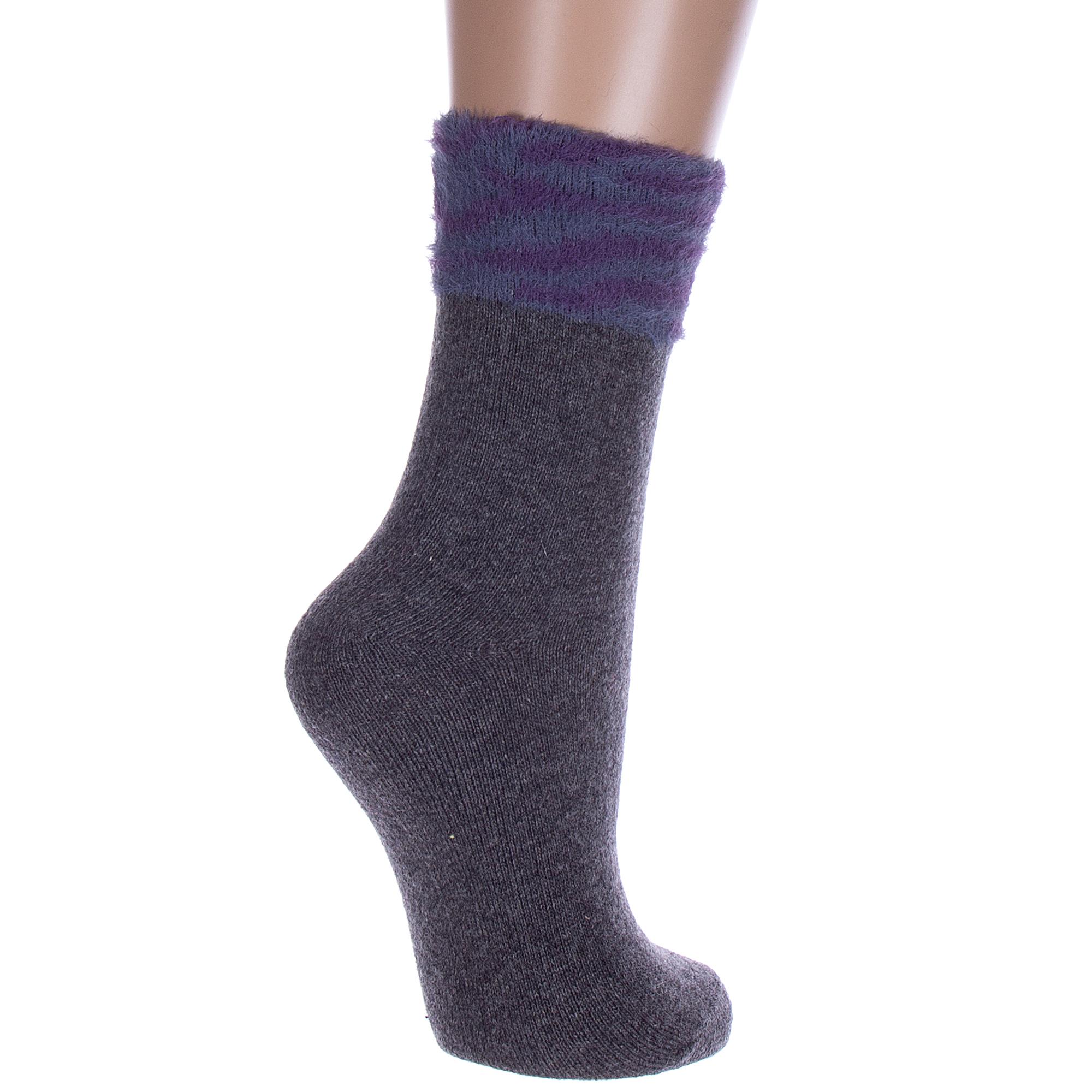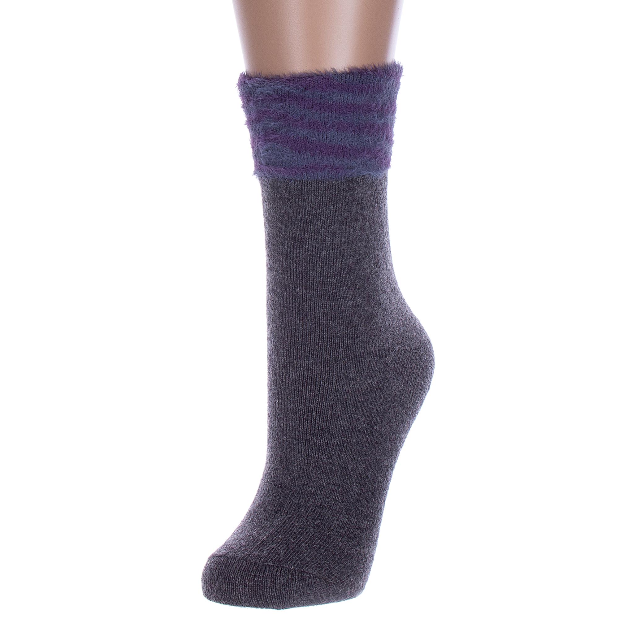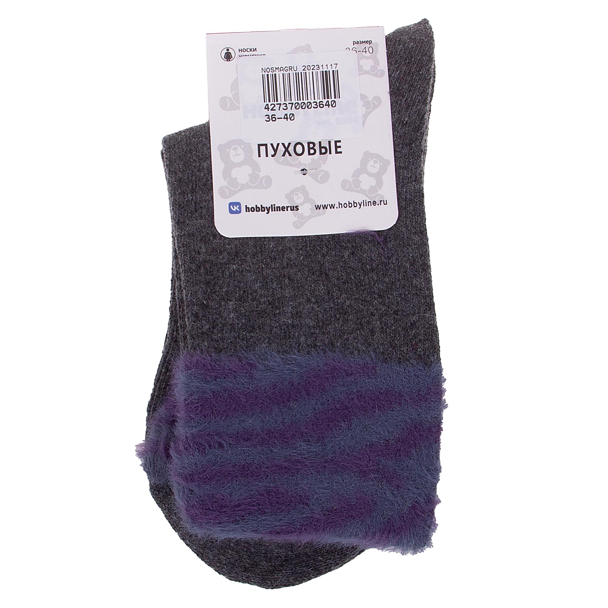 Женские теплые носки "Пуховые" Hobby Line Нжпух7807-9, СЕРЫЕ с фиолетовым манжетом