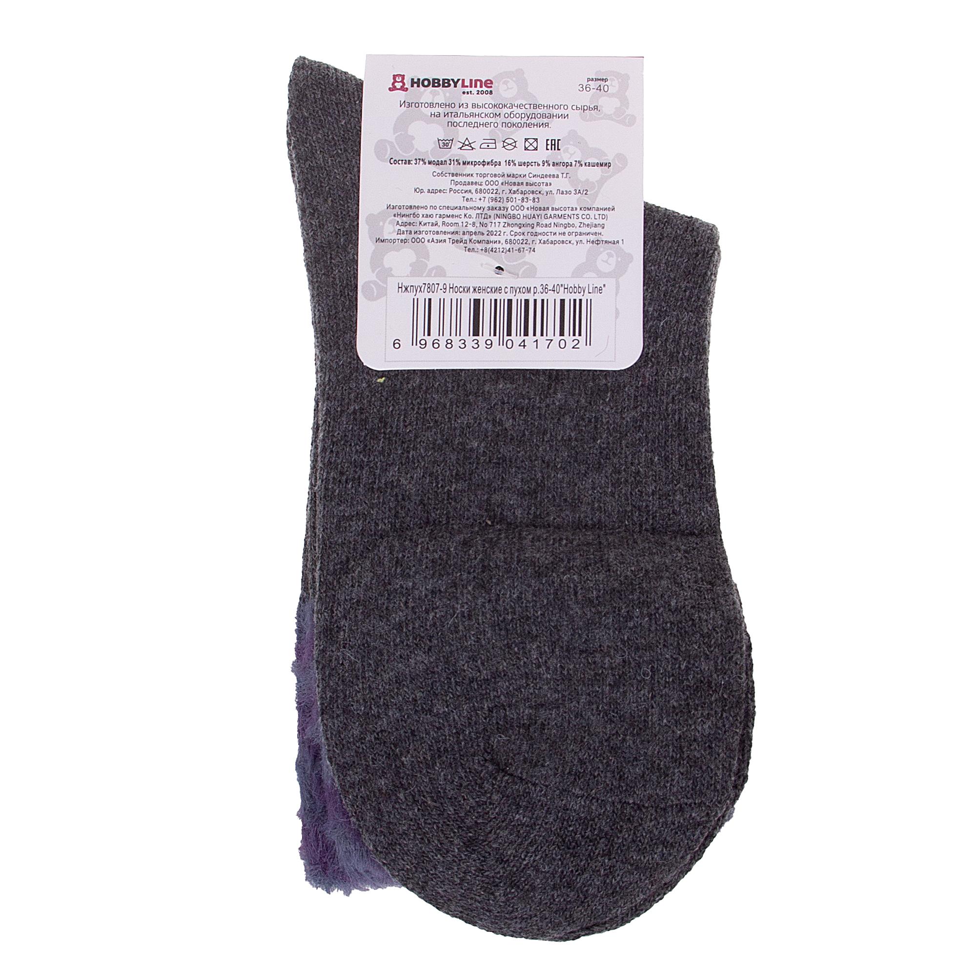 Зимние укороченные женские носки, цвет серый, теплые, с принтом, необычные, состав: 37% модал, 31% микрофибра, 16% шерсть, 9% ангора, 7% кашемир, арт. Нжпух7807-9. Производитель «Китай, страна бренда - Россия» под брендом «Hobby line».