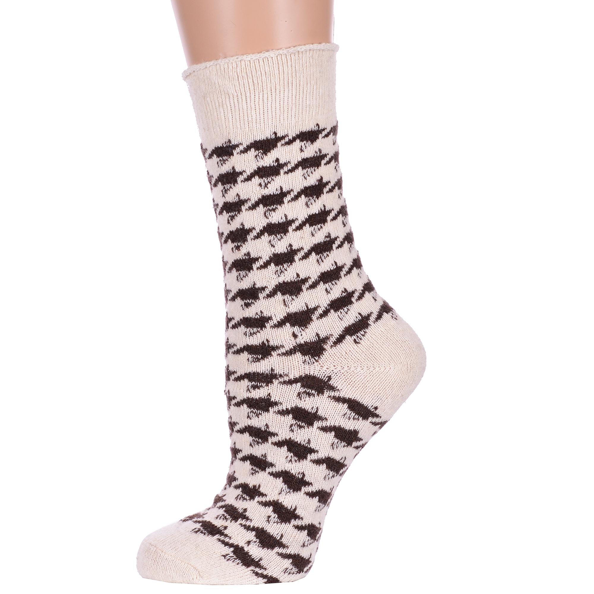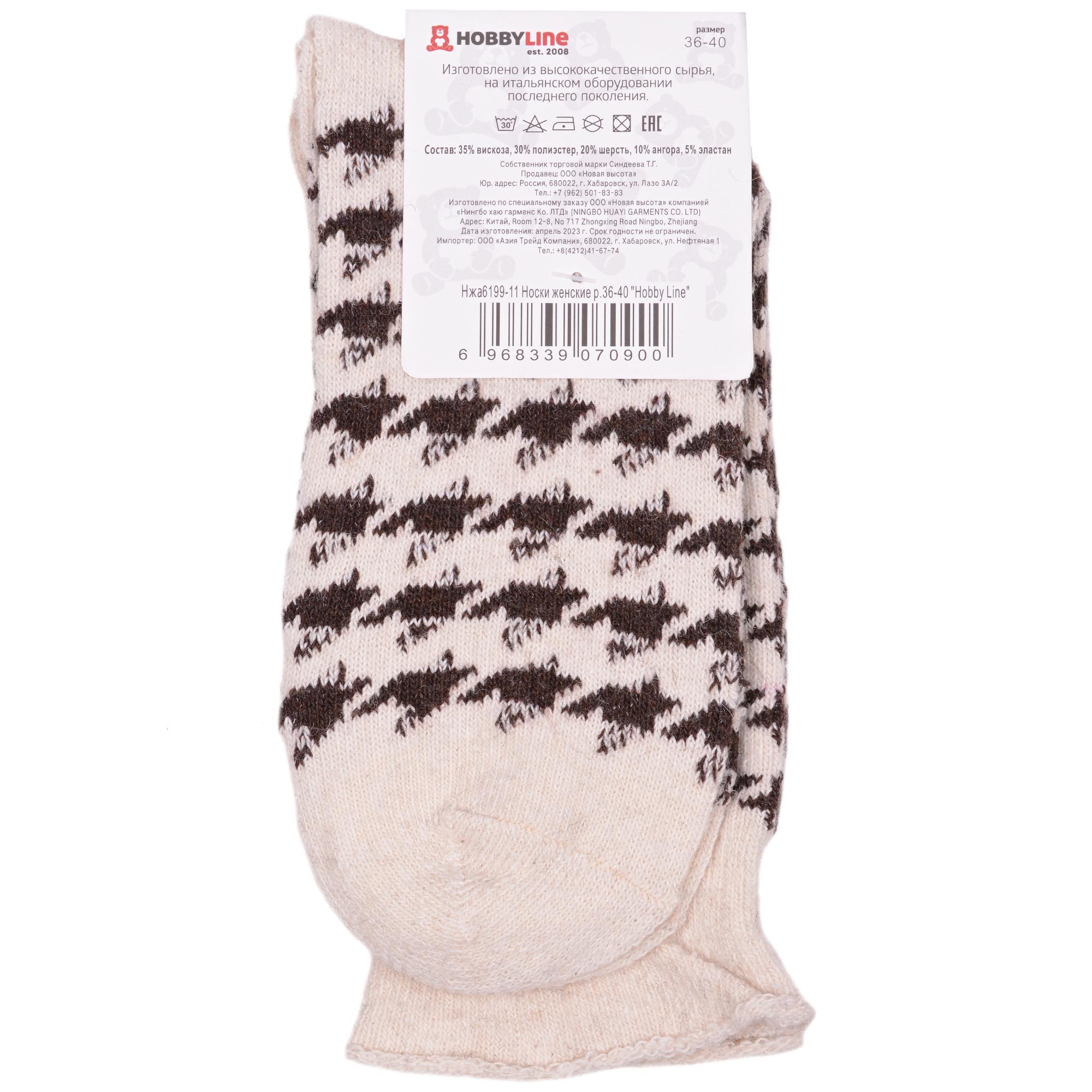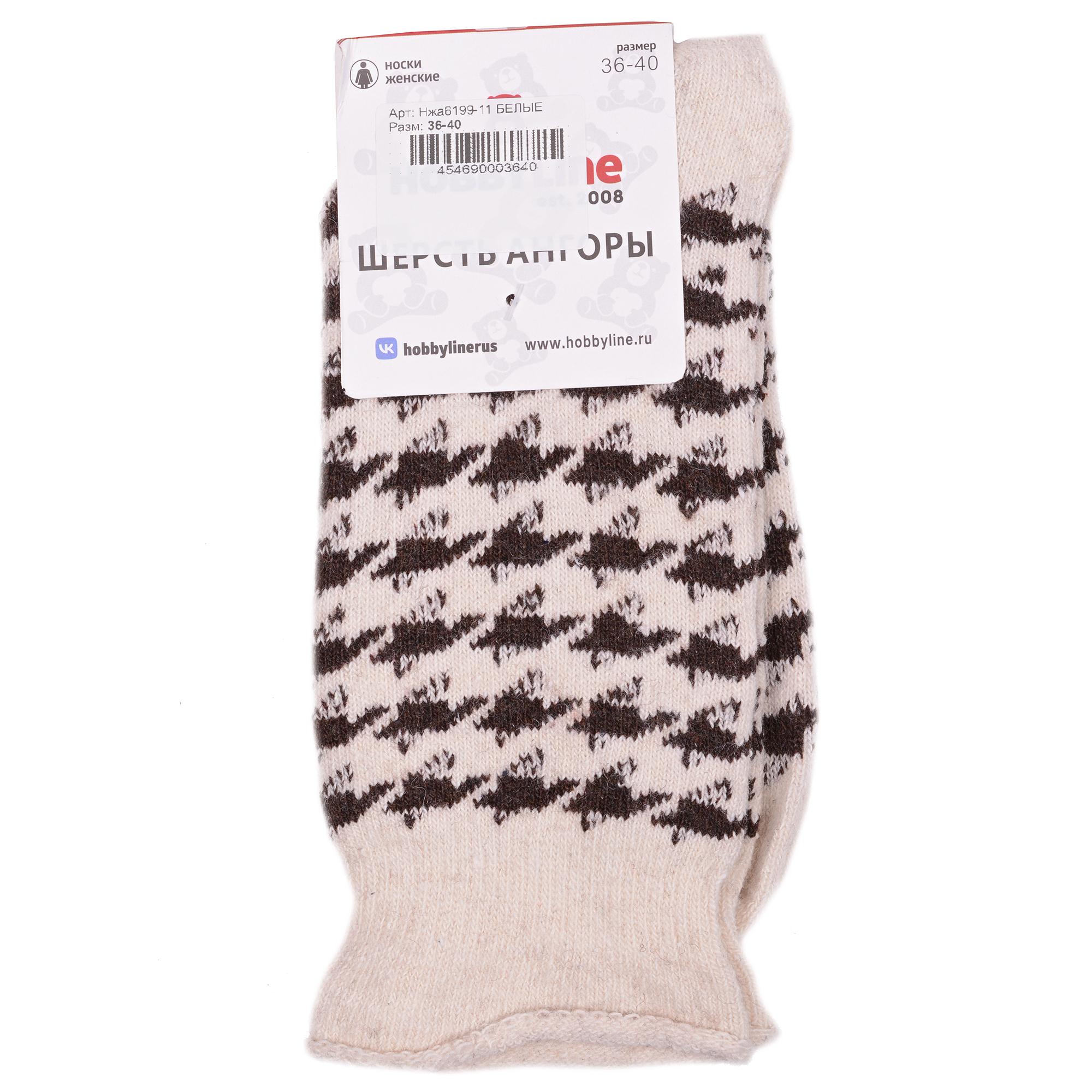 Зимние средней длины женские носки, цвет белый, теплые, повседневные, медицинские, шов обычный (не бесшовные), принт (рисунок): елочка / гусиная лапка, с узором, состав: 35% вискоза, 20% шерсть, 10% ангора, 30% полиэстер, 5% эластан, арт. Нжа6199-11. Производитель «Китай, страна бренда - Россия» под брендом «Hobby line».