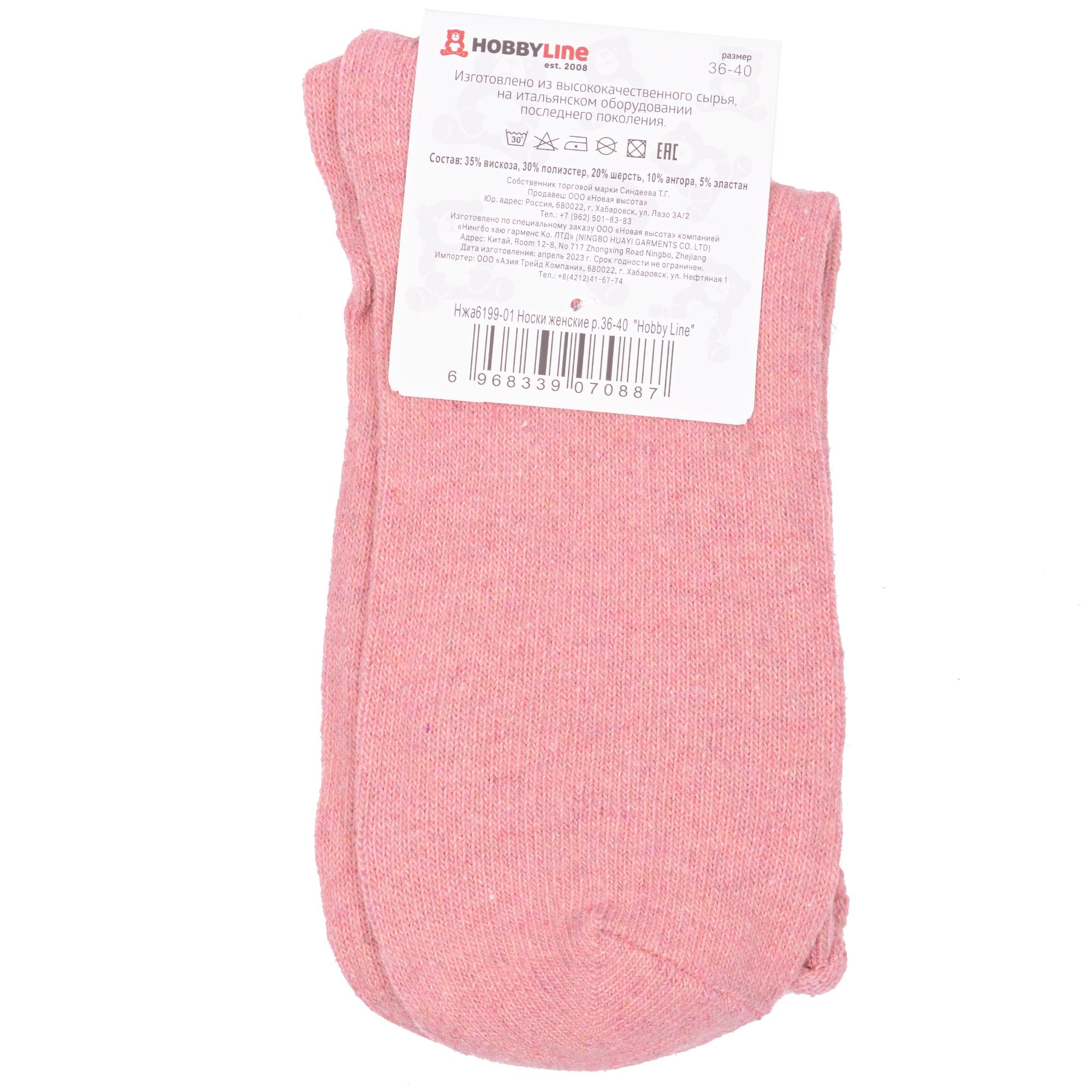 Зимние средней длины женские носки, цвет розовый, теплые, медицинские, шов обычный (не бесшовные), принт (рисунок): однотонный, без рисунков/узоров, состав: 35% вискоза, 20% шерсть, 10% ангора, 30% полиэстер, 5% эластан, арт. Нжа6199-01. Производитель «Китай, страна бренда - Россия» под брендом «Hobby line».