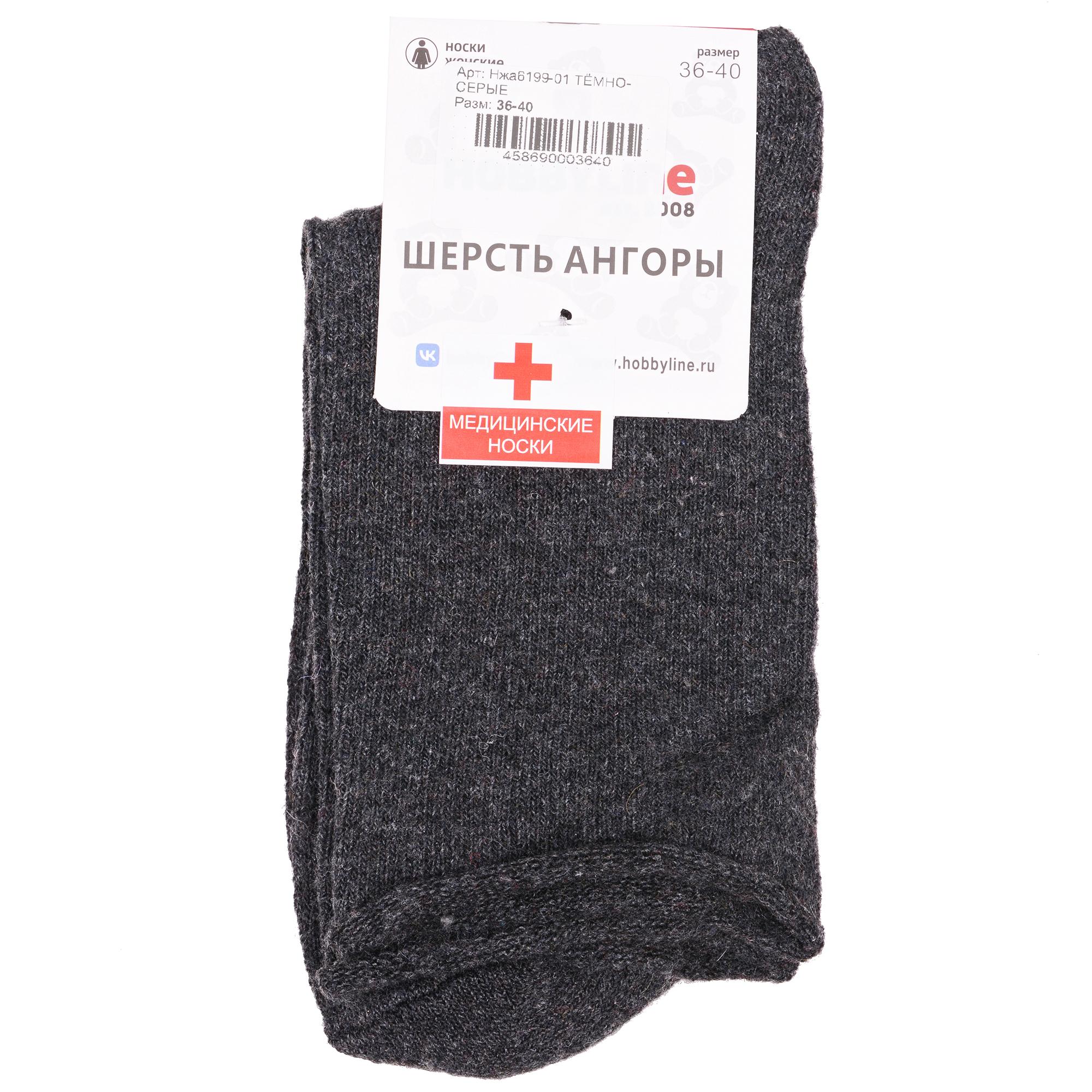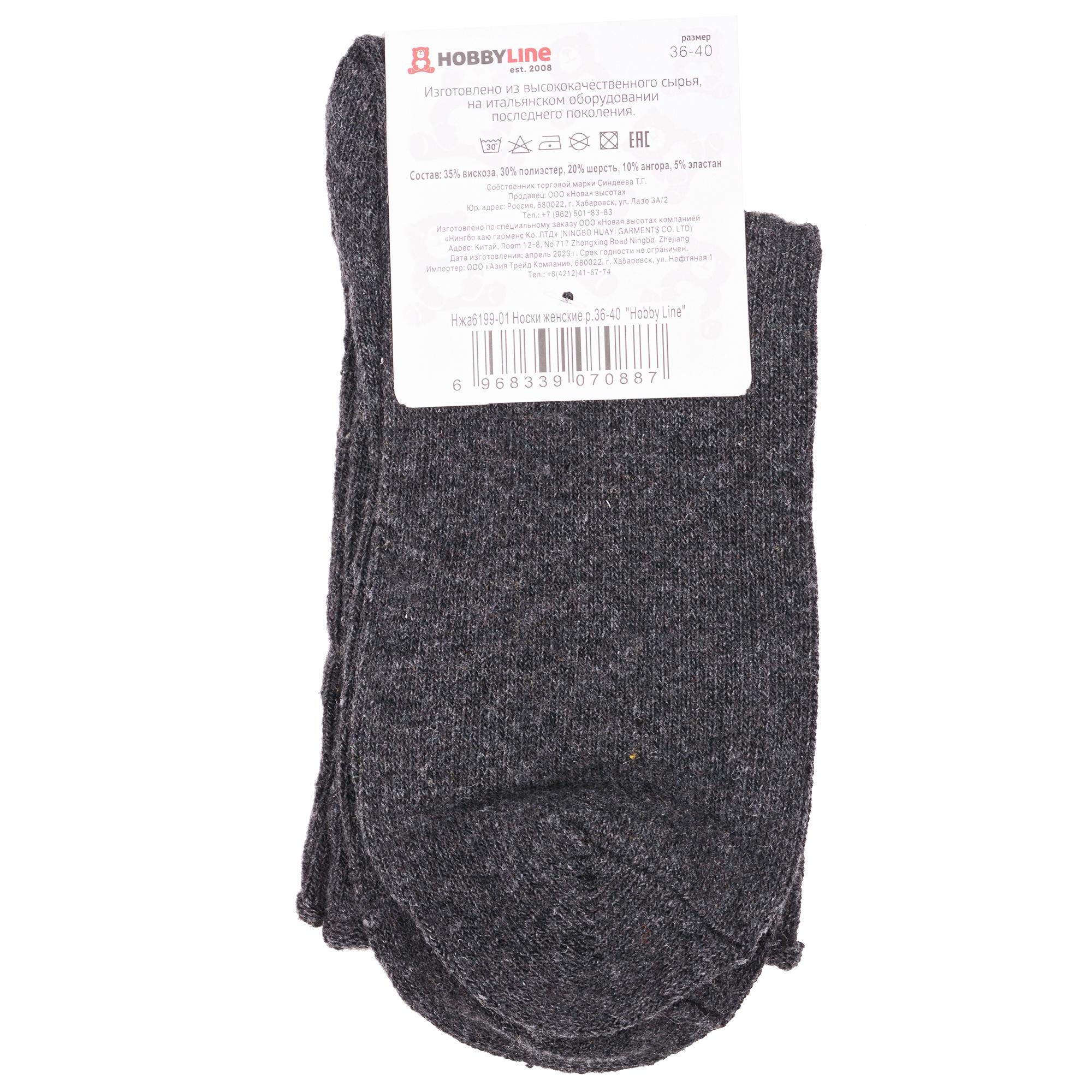 Зимние укороченные женские носки, цвет темно-серый, теплые, медицинские, шов обычный (не бесшовные), принт (рисунок): однотонный, без рисунков/узоров, состав: 35% вискоза, 20% шерсть, 10% ангора, 30% полиэстер, 5% эластан, арт. Нжа6199-01. Производитель «Китай, страна бренда - Россия» под брендом «Hobby line».
