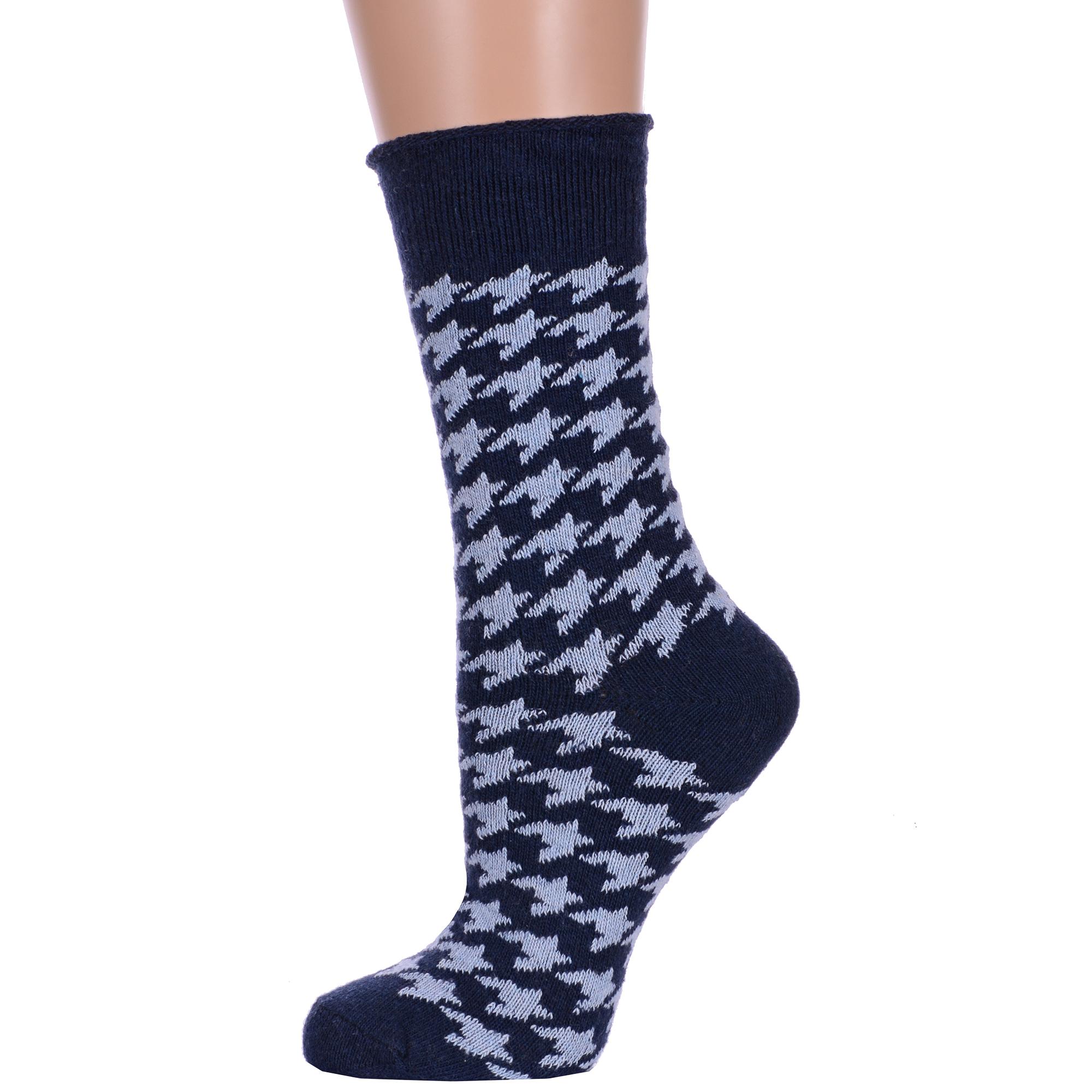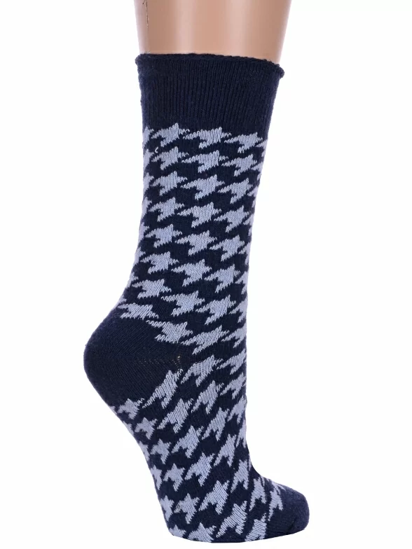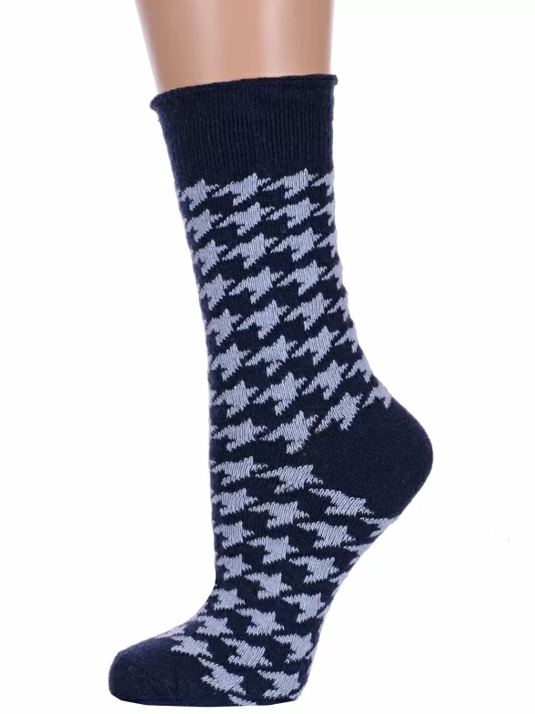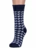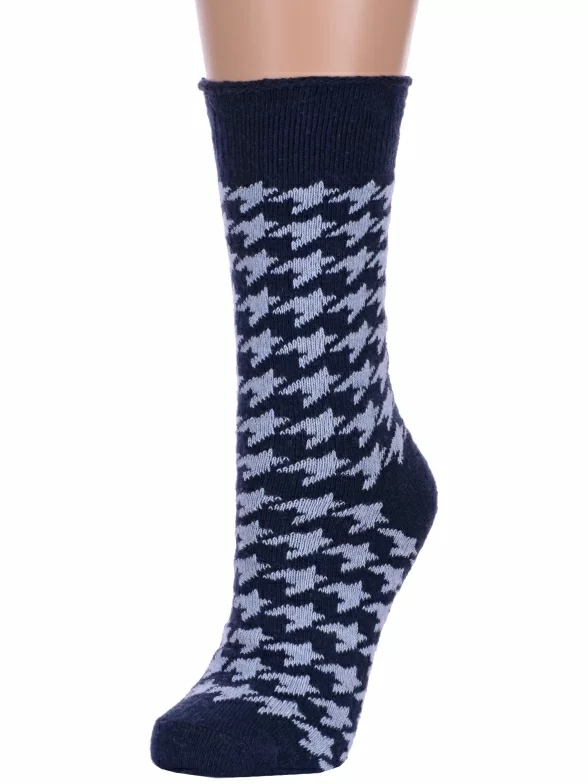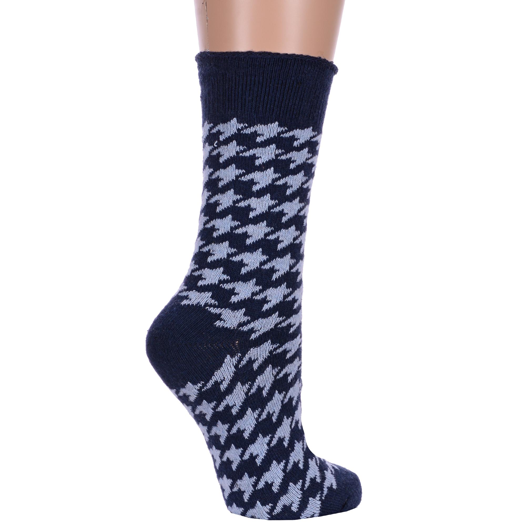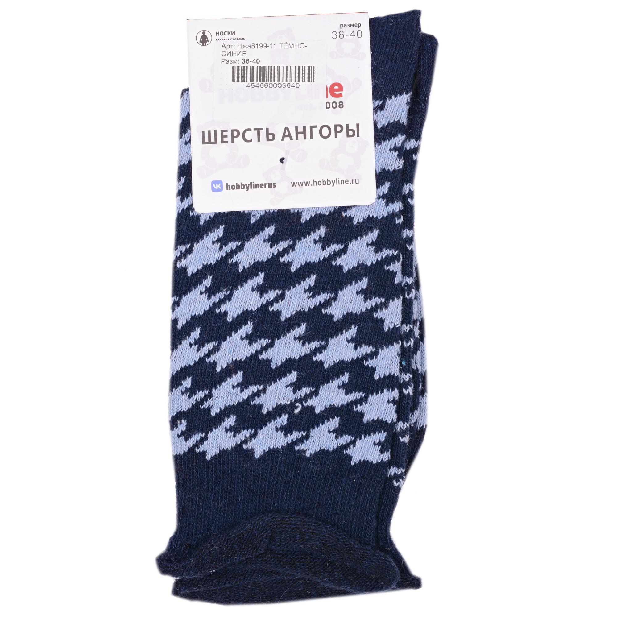 Зимние средней длины женские носки, цвет темно-синий, теплые, повседневные, медицинские, шов обычный (не бесшовные), принт (рисунок): елочка / гусиная лапка, с узором, состав: 35% вискоза, 20% шерсть, 10% ангора, 30% полиэстер, 5% эластан, арт. Нжа6199-11. Производитель «Китай, страна бренда - Россия» под брендом «Hobby line».