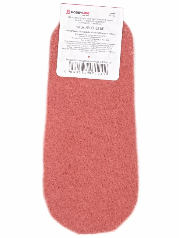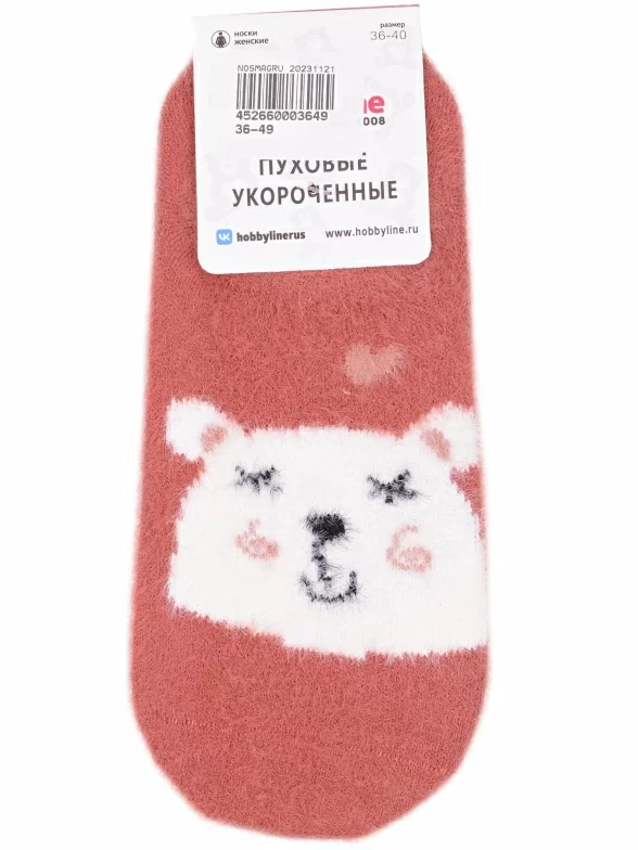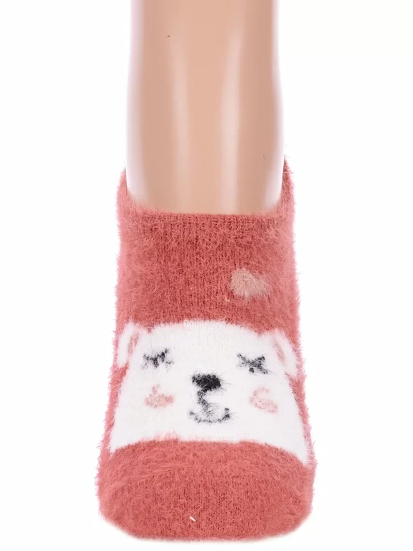 Межсезонные или зимние ультракороткие женские носки, цвет коричневый, теплые, повседневные, шов обычный (не бесшовные), принт (рисунок): животные, с узором, состав: 37% модал, 31% микрофибра, 16% шерсть, 9% ангора, 7% кашемир, арт. Нжпуху9501. Производитель «Китай, страна бренда - Россия» под брендом «Hobby line».