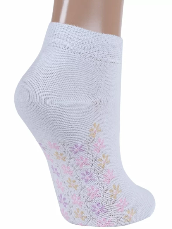 Укороченные женские носки, отличающиеся очаровательным цветочным принтом на подошве. Они изготовлены из приятного трикотажа с высоким содержанием хлопка и очень приятны в носке.