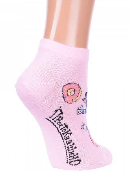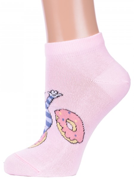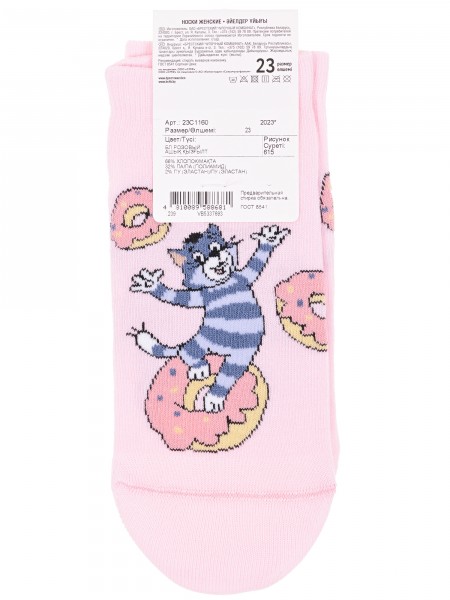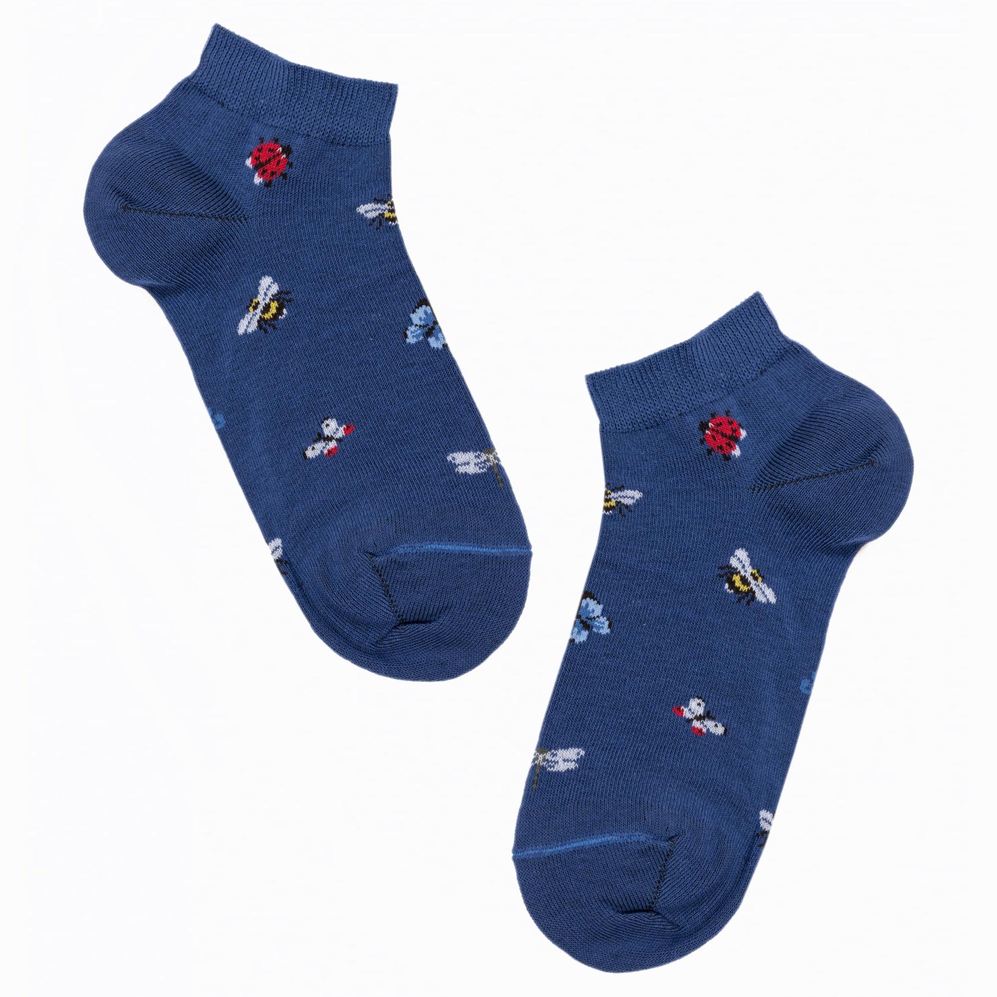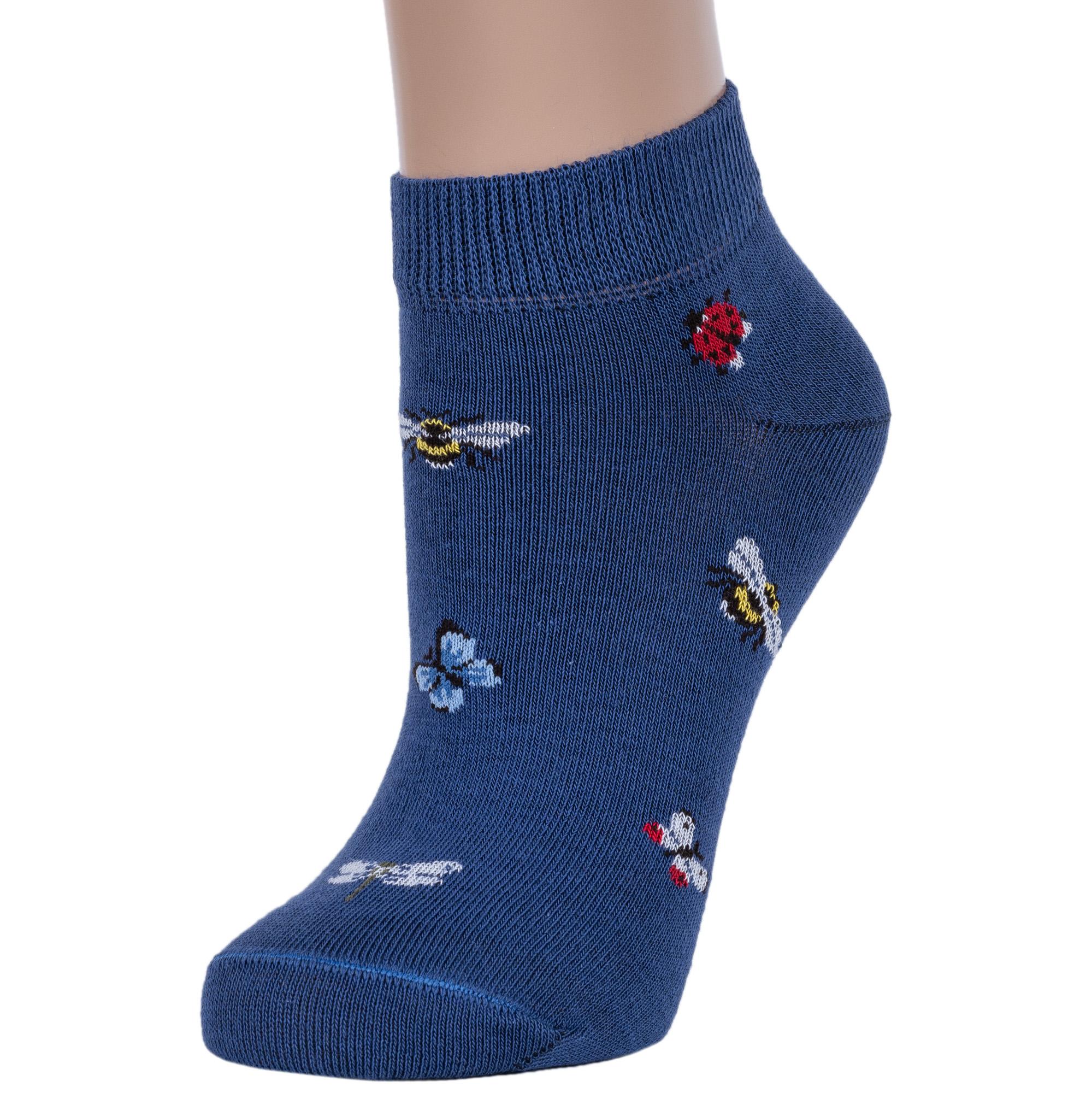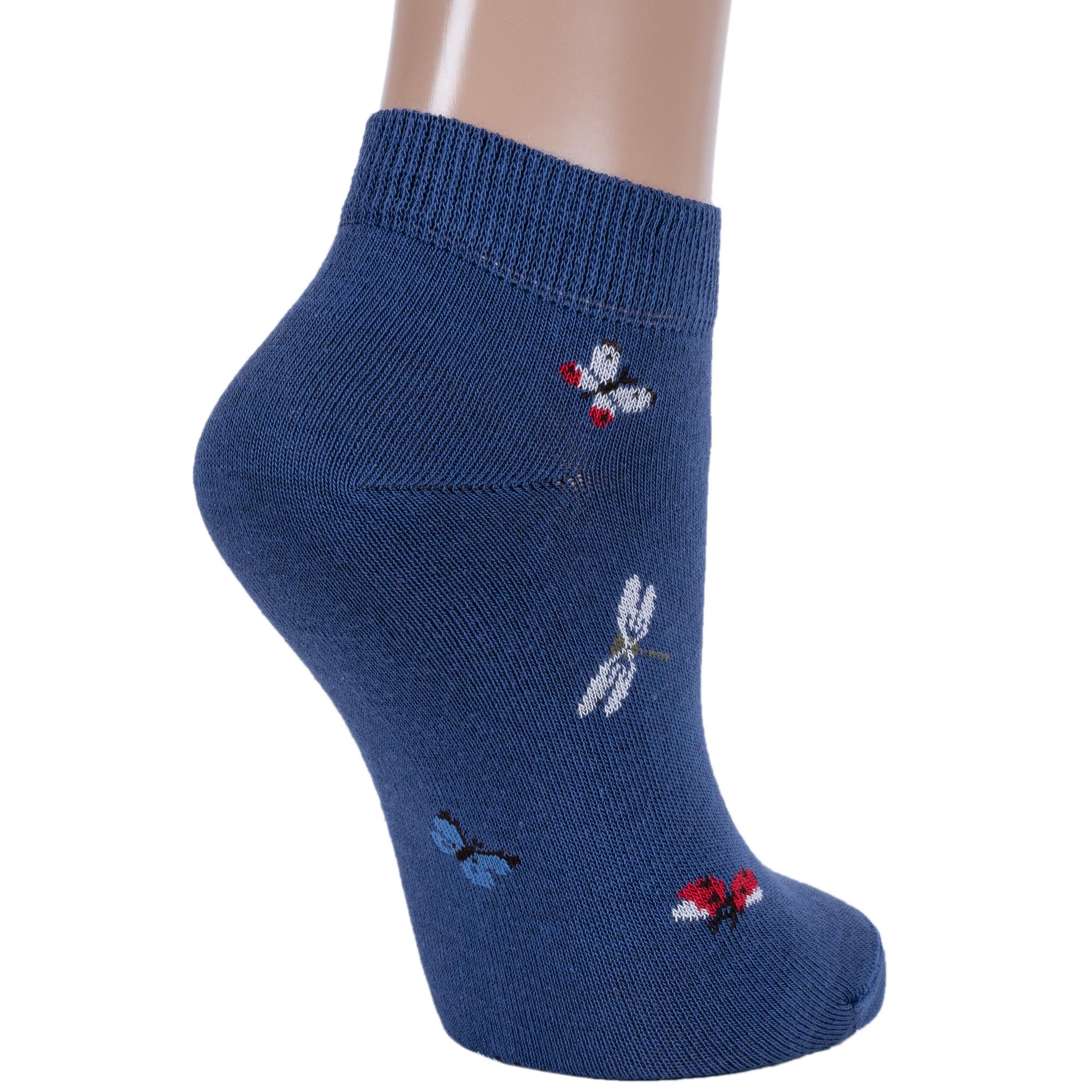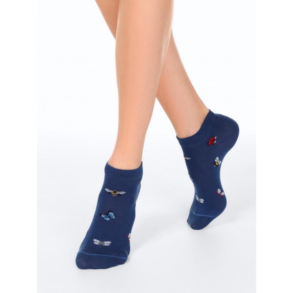 Круглогодичные или летние короткие женские носки, цвет синий-джинс, повседневные, шов кеттельный (бесшовная технология), принт (рисунок): животные, геометрия, с узором, состав: 66% хлопок, 32% полиэстер, 2% эластан, арт. 14С1101. Производитель «Брестский чулочный комбинат ОАО, Беларусь» под брендом «Брестские (бчк)».
