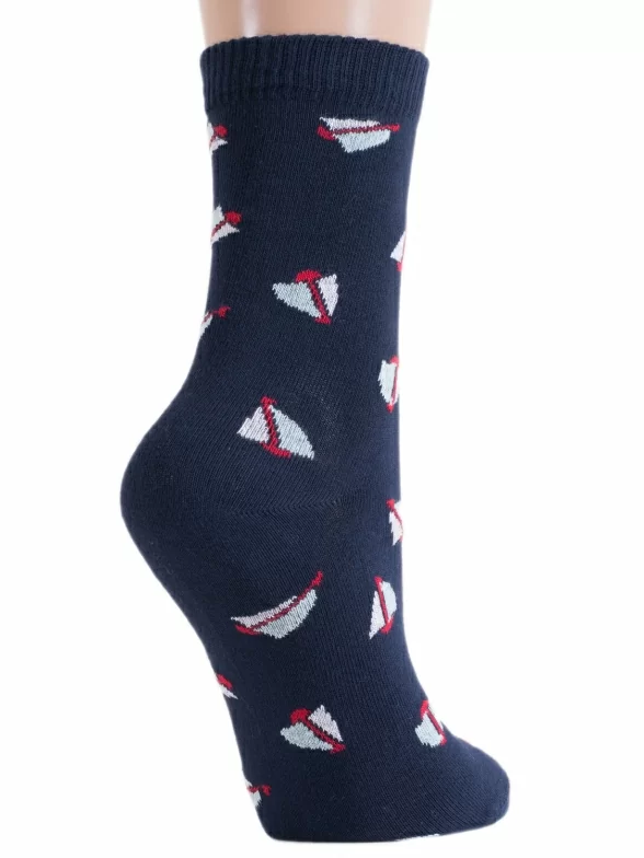 Женские носки классической длины с элегантным принтом на темном фоне. Они сделаны из качественного плотного трикотажа с высоким процентом содержания натурального хлопка. Такие носки приятны к телу и обеспечивают естественную микроциркуляцию воздуха, а вместе с ней и повышенный комфорт.
