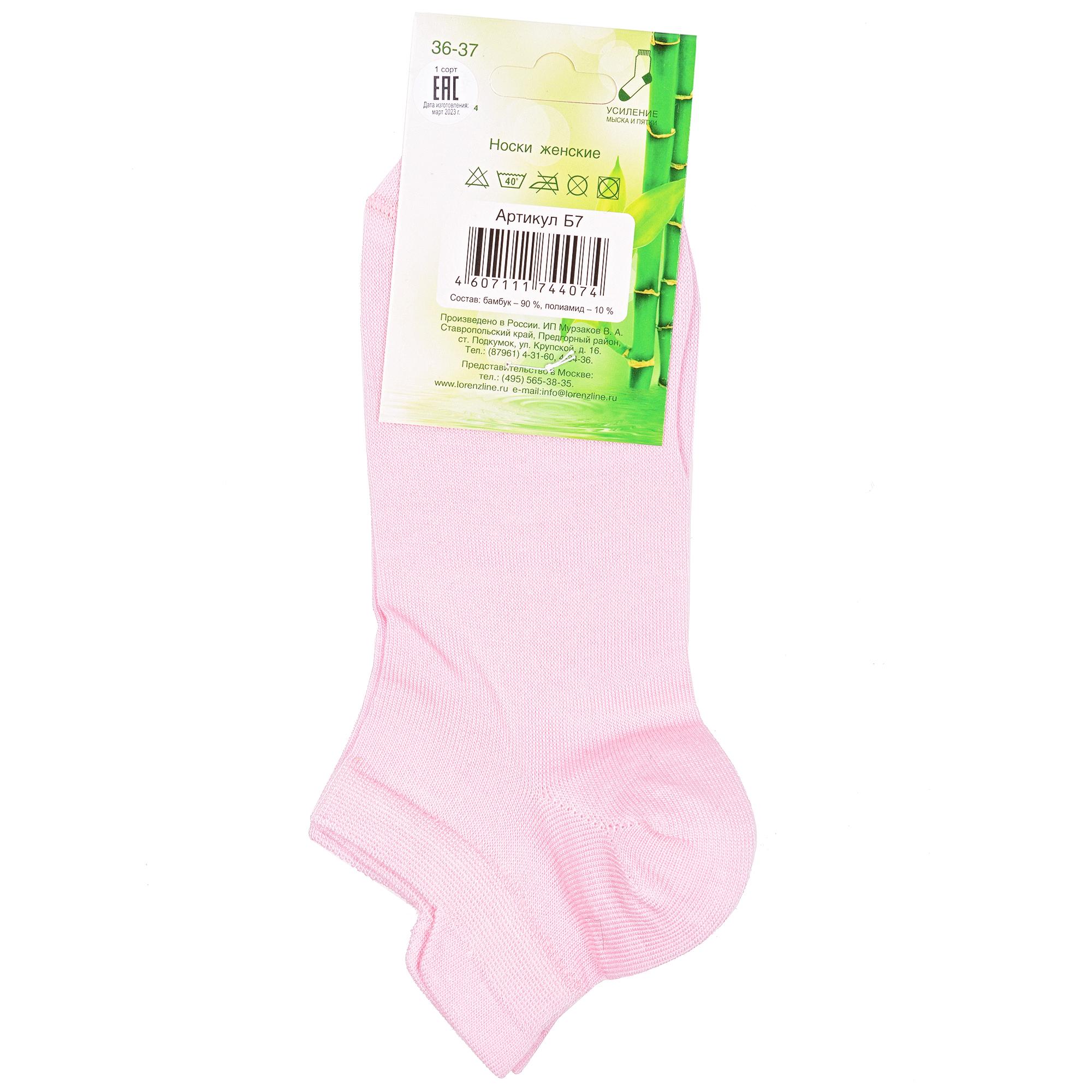 Летние ультракороткие женские носки, цвет розовый, классические, шов кеттельный (бесшовная технология), принт (рисунок): однотонный, без рисунков/узоров, состав: 90% бамбук, 10% полиамид, арт. Б7. Производитель «ИП Мурзаков В.А., Ставропольский край, Россия» под брендом «Lorenzline».