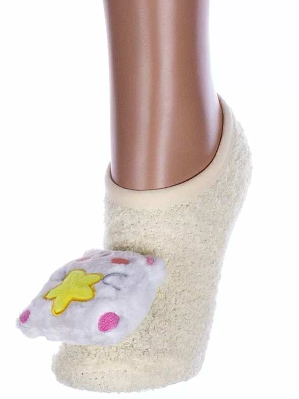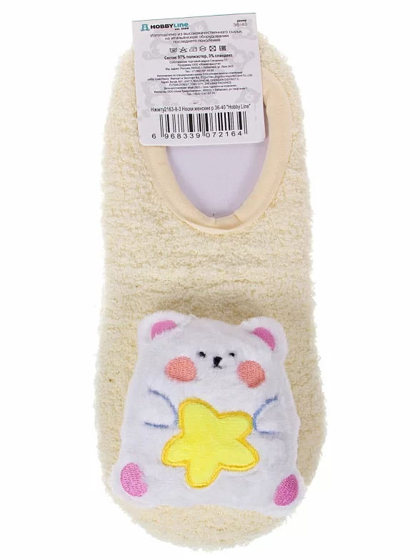 Межсезонные или зимние ультракороткие женские носки, цвет желтый, теплые, с нескользящей стопой, необычные, махровые, состав: 97% полиэстер, 3% спандекс, арт. Нжмту2163-8-03. Производитель «Китай, страна бренда - Россия» под брендом «Hobby line».