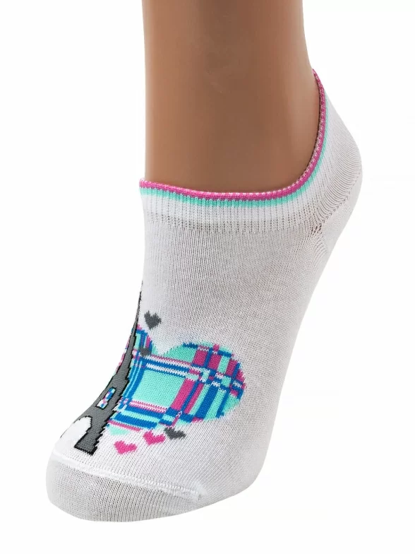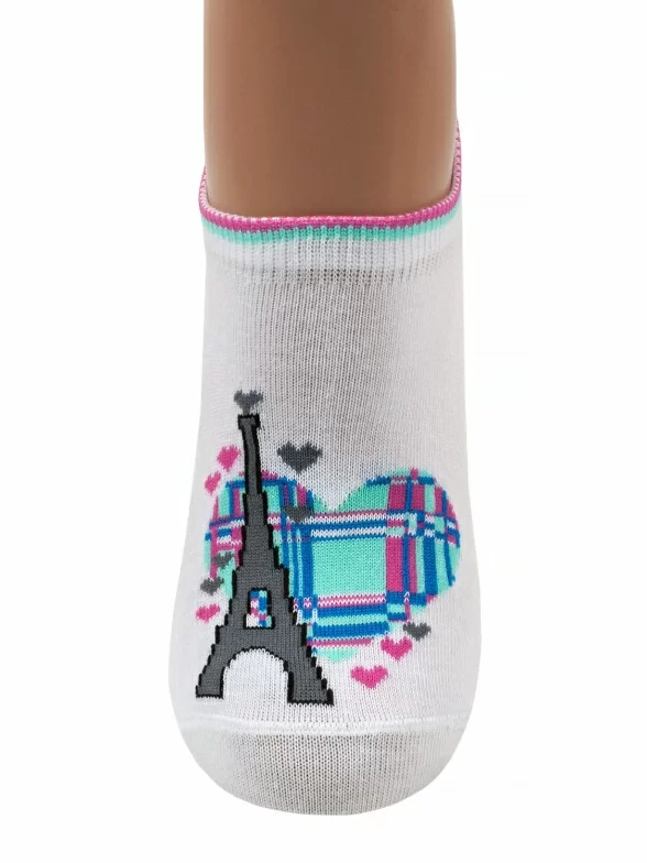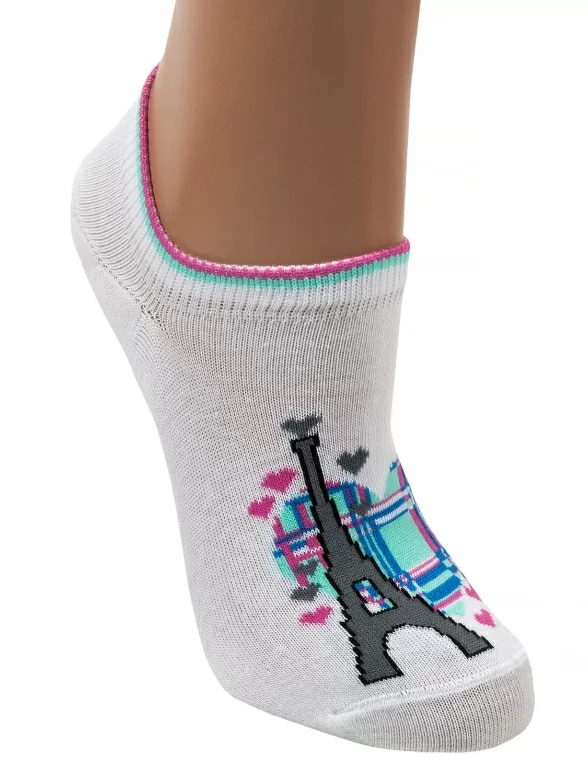 Короткие женские носки Красная ветка. Изготовлены из хлопка, с добавлением полиамида и эластана. Отлично сочетаются с повседневной одеждой, а так же спортивной обувью. Особенность модели - красивый принт с романтичным Парижем.