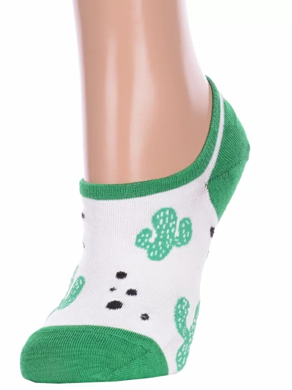 Женские ультракороткие носки Hobby Line, ННЖ18-09-03-11, БЕЛО-ЗЕЛЕНЫЕ