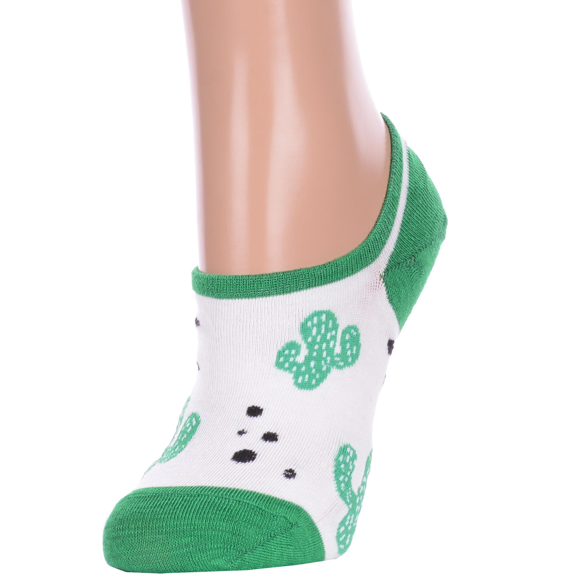 Женские ультракороткие носки Hobby Line ННЖ18-09-03-11, БЕЛО-ЗЕЛЕНЫЕ