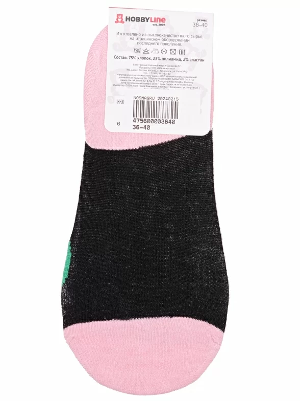 Женские ультракороткие носки Hobby Line, ННЖ18-09-01, ЧЕРНО-РОЗОВЫЕ