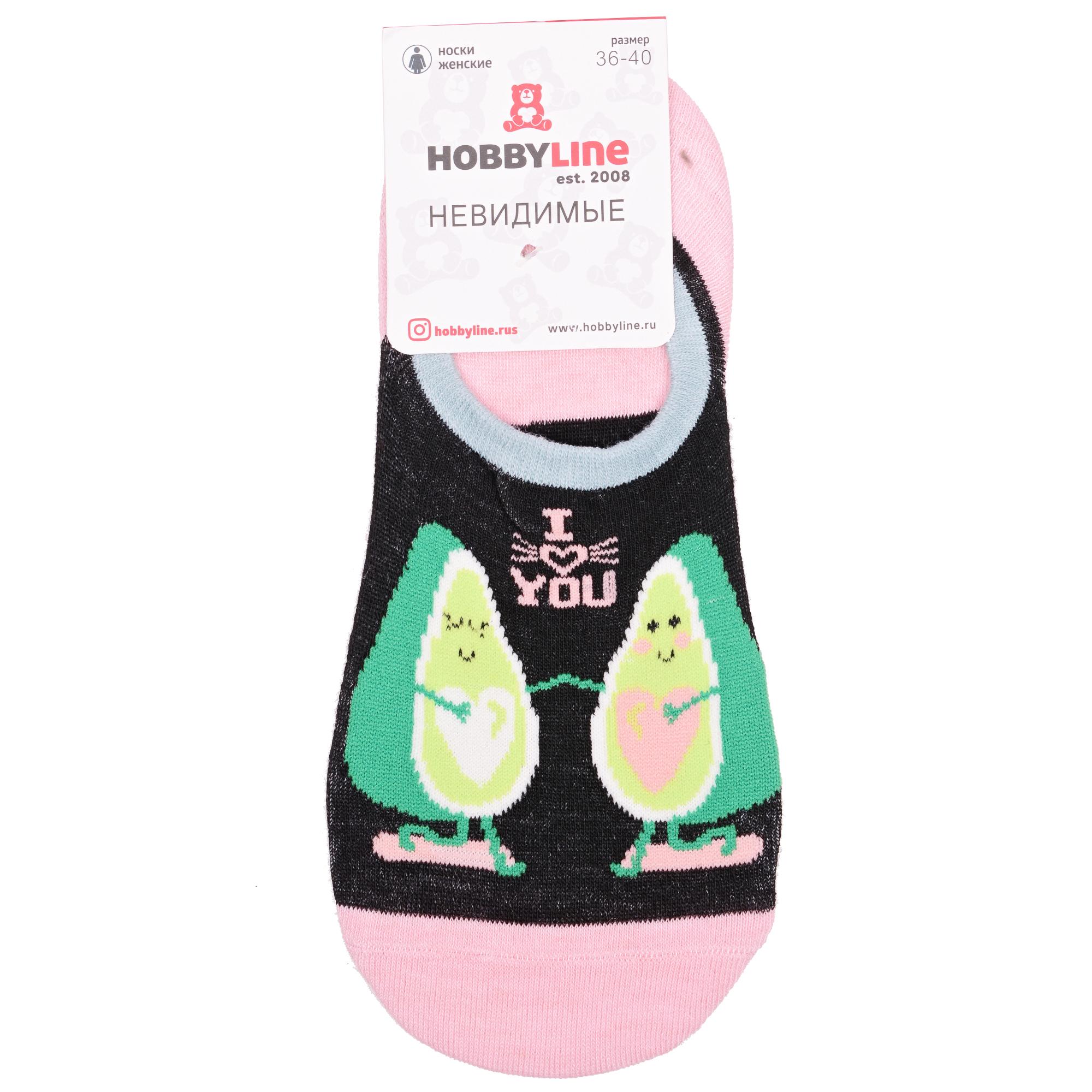 Женские ультракороткие носки Hobby Line ННЖ18-09-01, ЧЕРНО-РОЗОВЫЕ