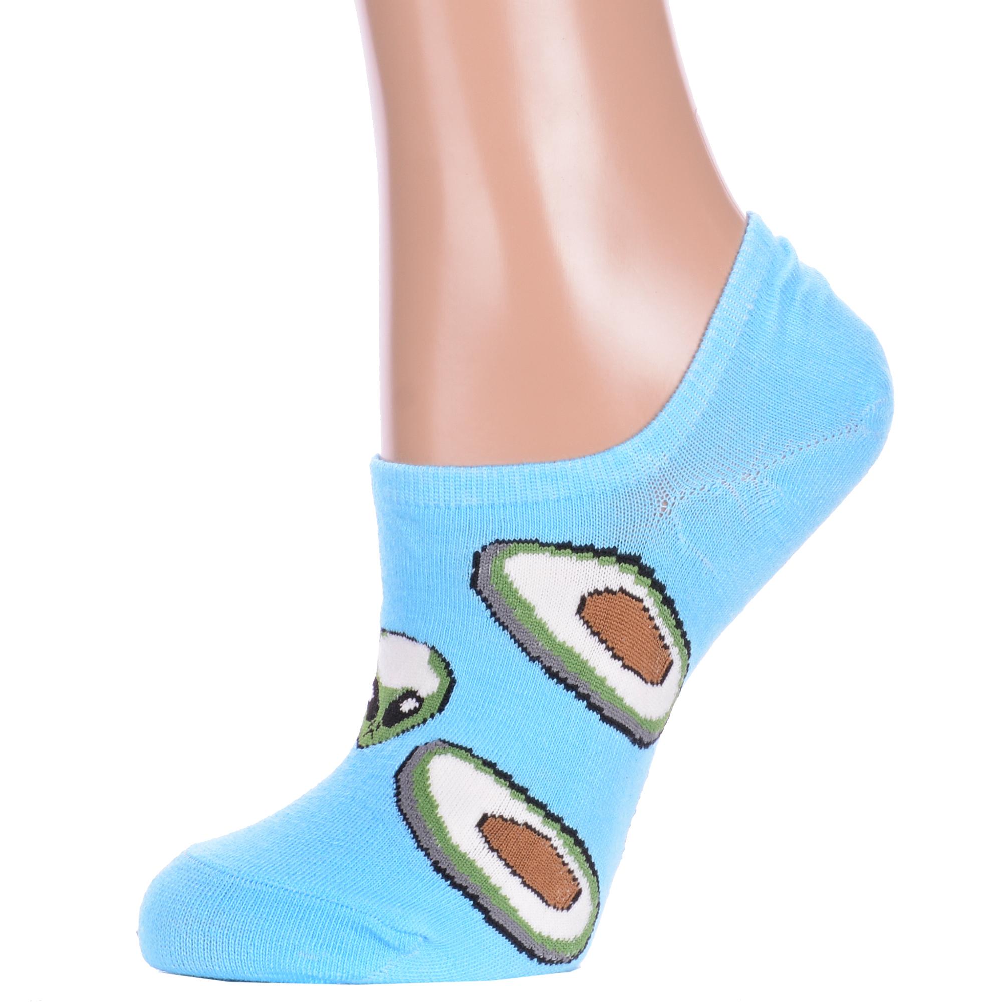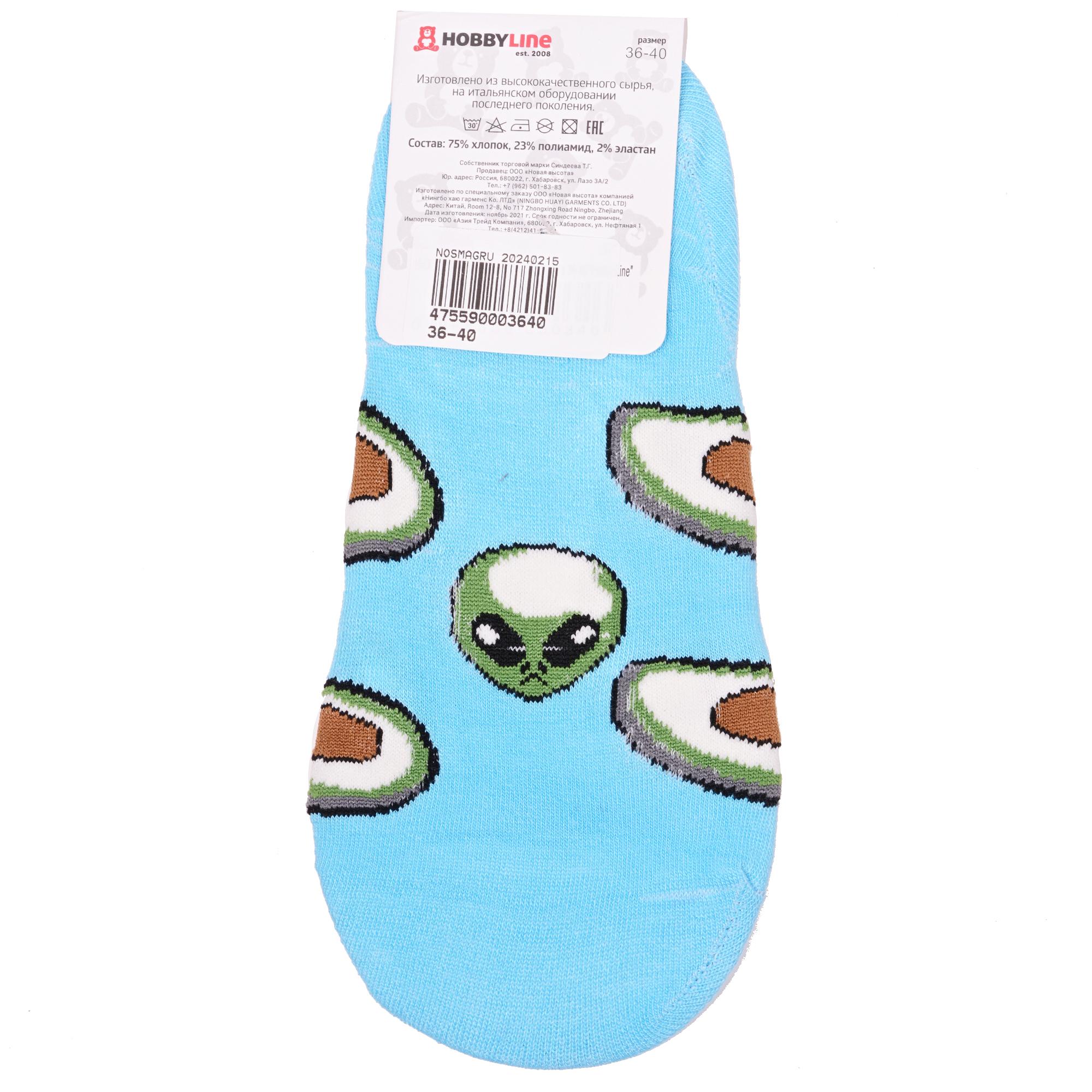 Летние ультракороткие женские носки, цвет голубой, с силиконовой вставкой, повседневные, шов обычный (не бесшовные), принт (рисунок): овощи / фрукты / ягоды, хоррор / ужасы, с узором, состав: 75% хлопок, 23% полиамид, 2% эластан, арт. ННЖ18-09-02. Производитель «Китай, страна бренда - Россия» под брендом «Hobby line».