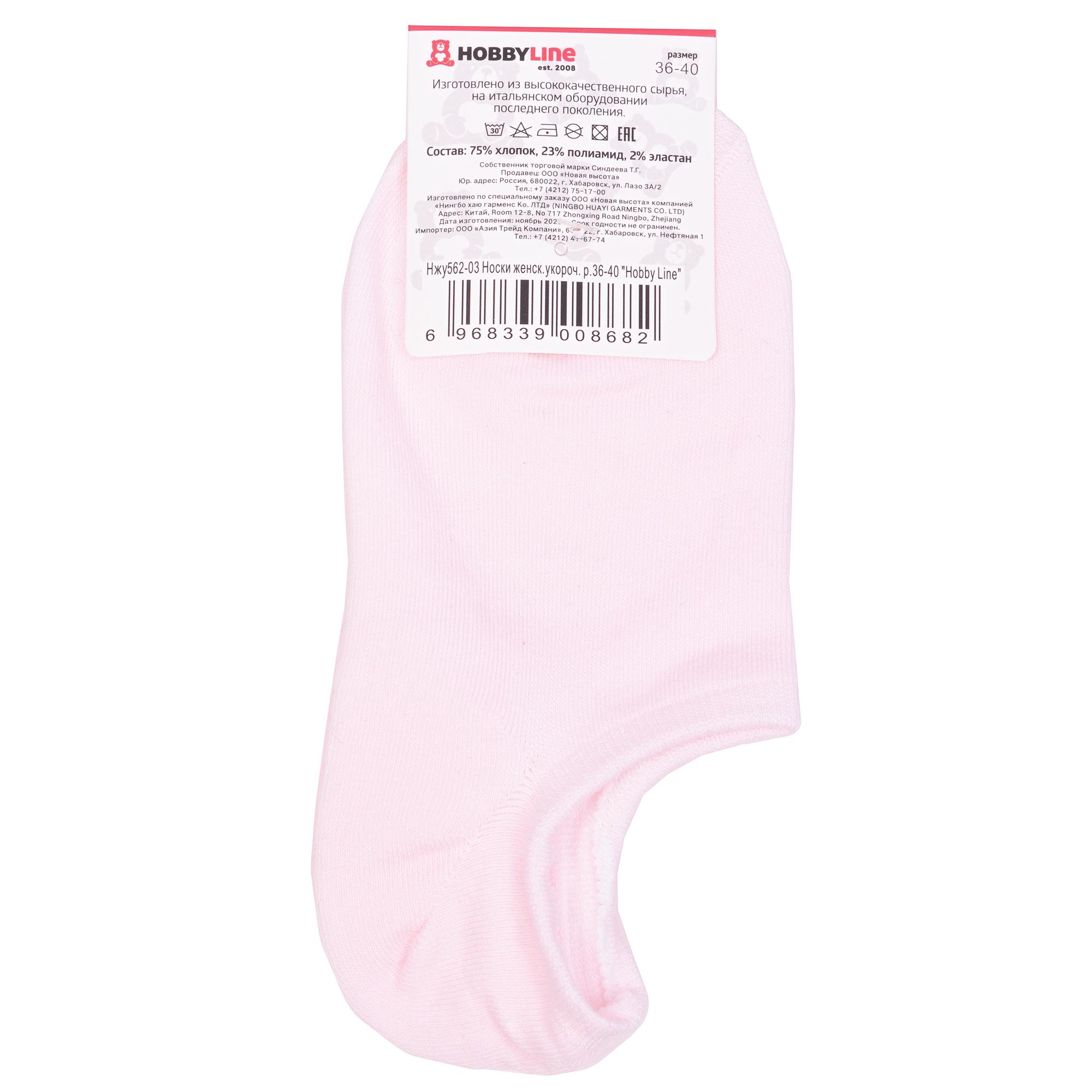 Летние ультракороткие женские носки, цвет розовый, классические, возможно бесшовные, принт (рисунок): однотонный, без рисунков/узоров, состав: 75% хлопок, 23% полиамид, 2% эластан, арт. Нжу562-03. Производитель «Китай, страна бренда - Россия» под брендом «Hobby line».