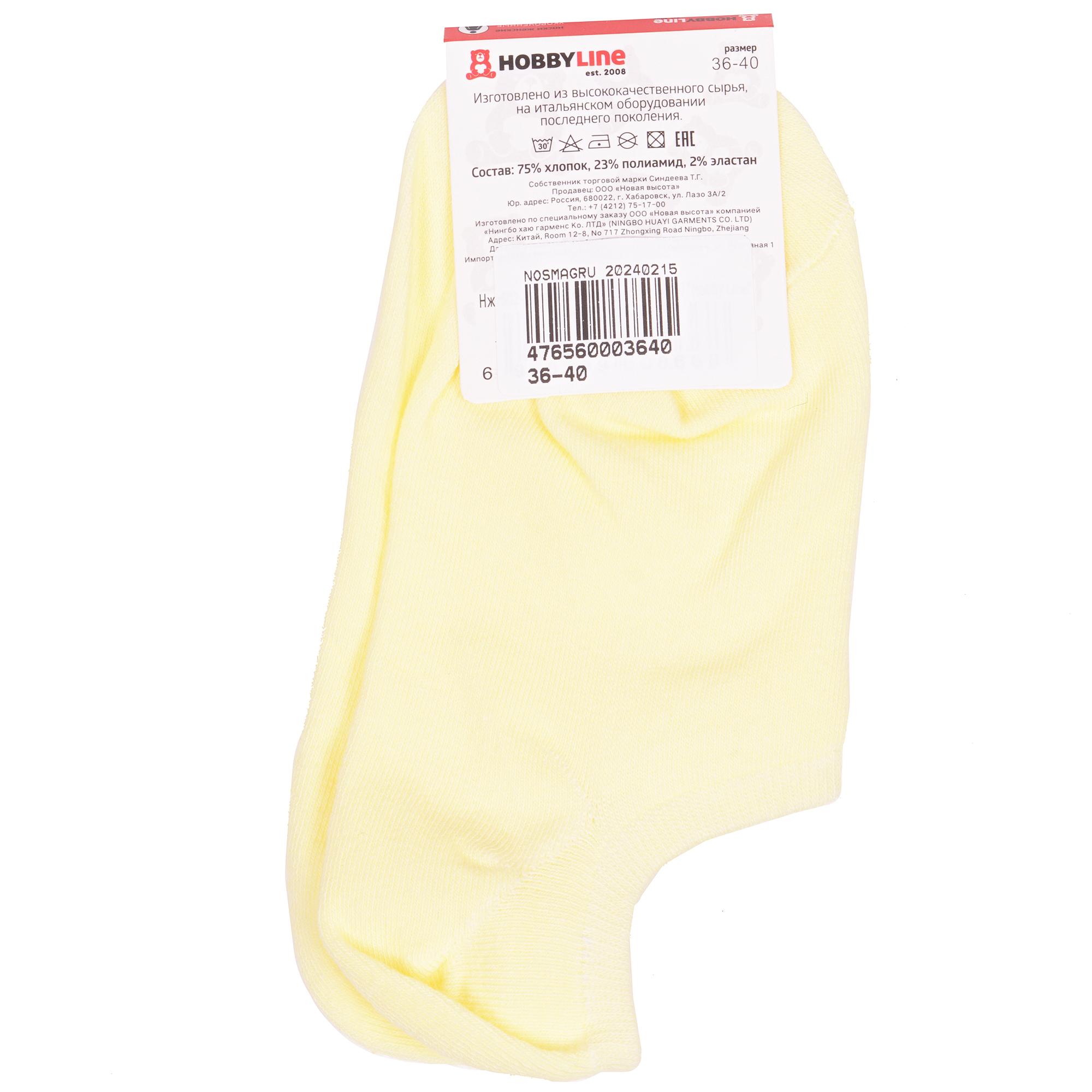 Летние ультракороткие женские носки, цвет желтый, классические, шов обычный (не бесшовные), принт (рисунок): однотонный, без рисунков/узоров, состав: 75% хлопок, 23% полиамид, 2% эластан, арт. Нжу562-01. Производитель «Китай, страна бренда - Россия» под брендом «Hobby line».