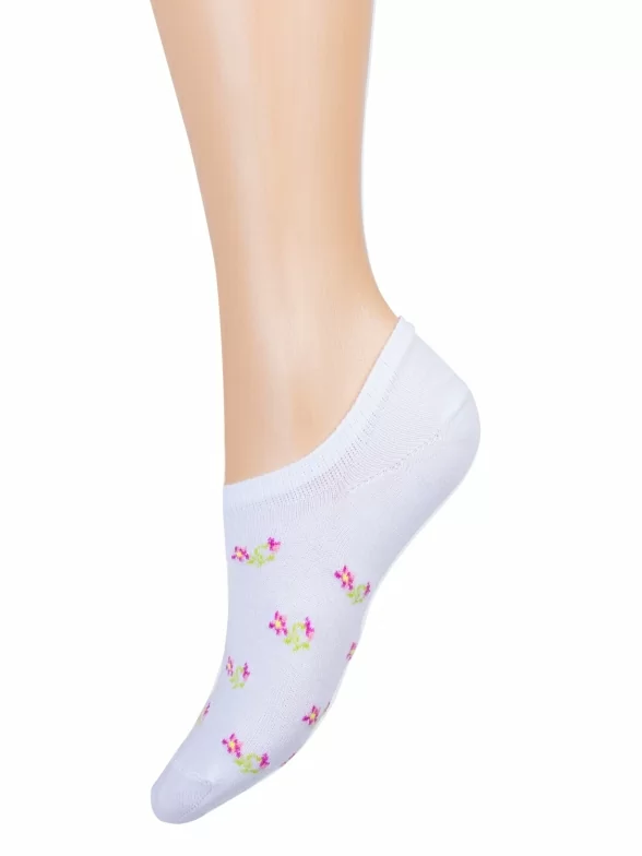 Ультракороткие хлопковые носки для женщин от бренда "Красная ветка". Отлично сочетаются со спортивной обувью и идеально подходят для занятий спортом. На 74% состоят из хлопка. Входящие в состав полиамид и эластан делают их более прочными и эластичными. Модель украшена рисунком в мелкий цветочек.