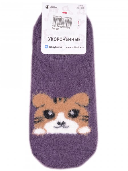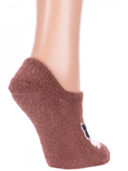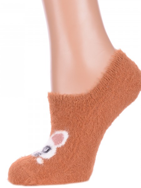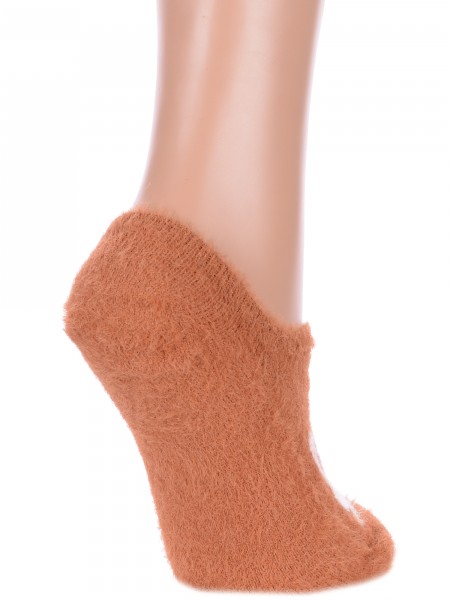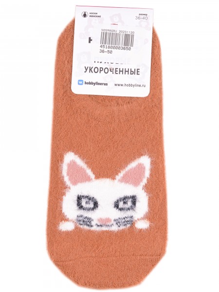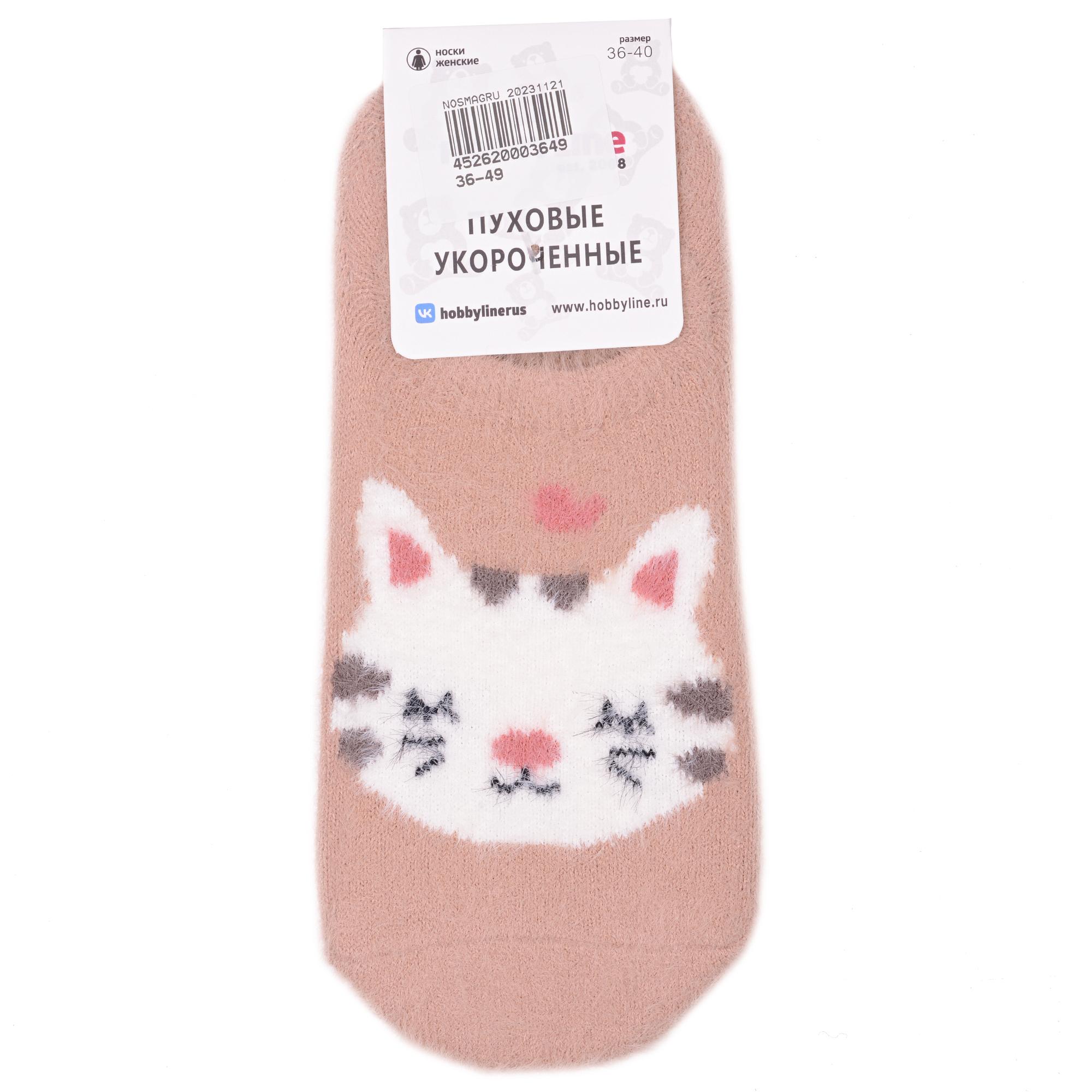 Межсезонные или зимние ультракороткие женские носки, цвет бежевый, теплые, повседневные, шов обычный (не бесшовные), принт (рисунок): животные, с узором, состав: 37% модал, 31% микрофибра, 16% шерсть, 9% ангора, 7% кашемир, арт. Нжпуху9501. Производитель «Китай, страна бренда - Россия» под брендом «Hobby line».