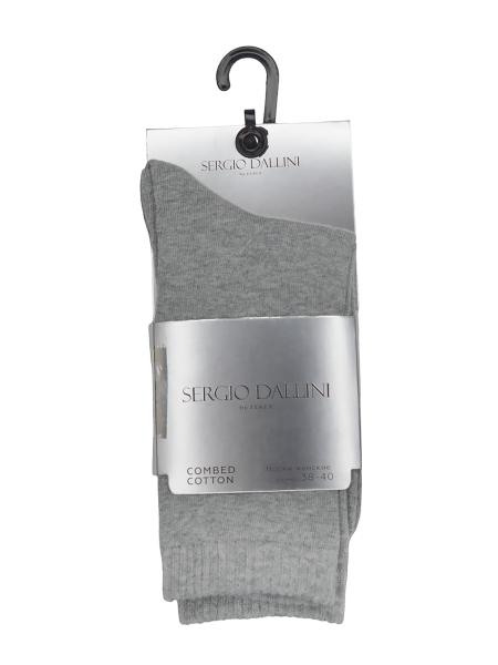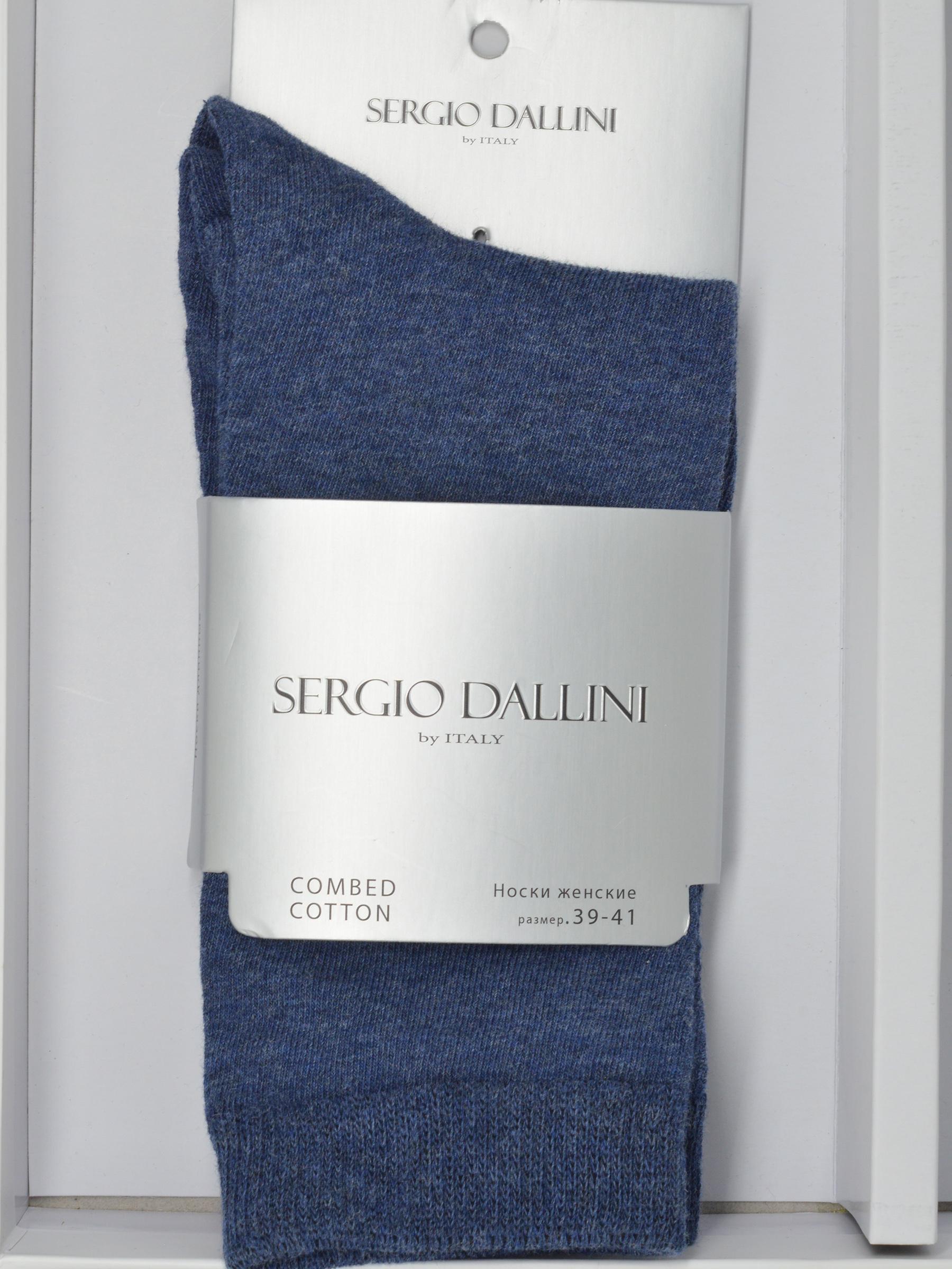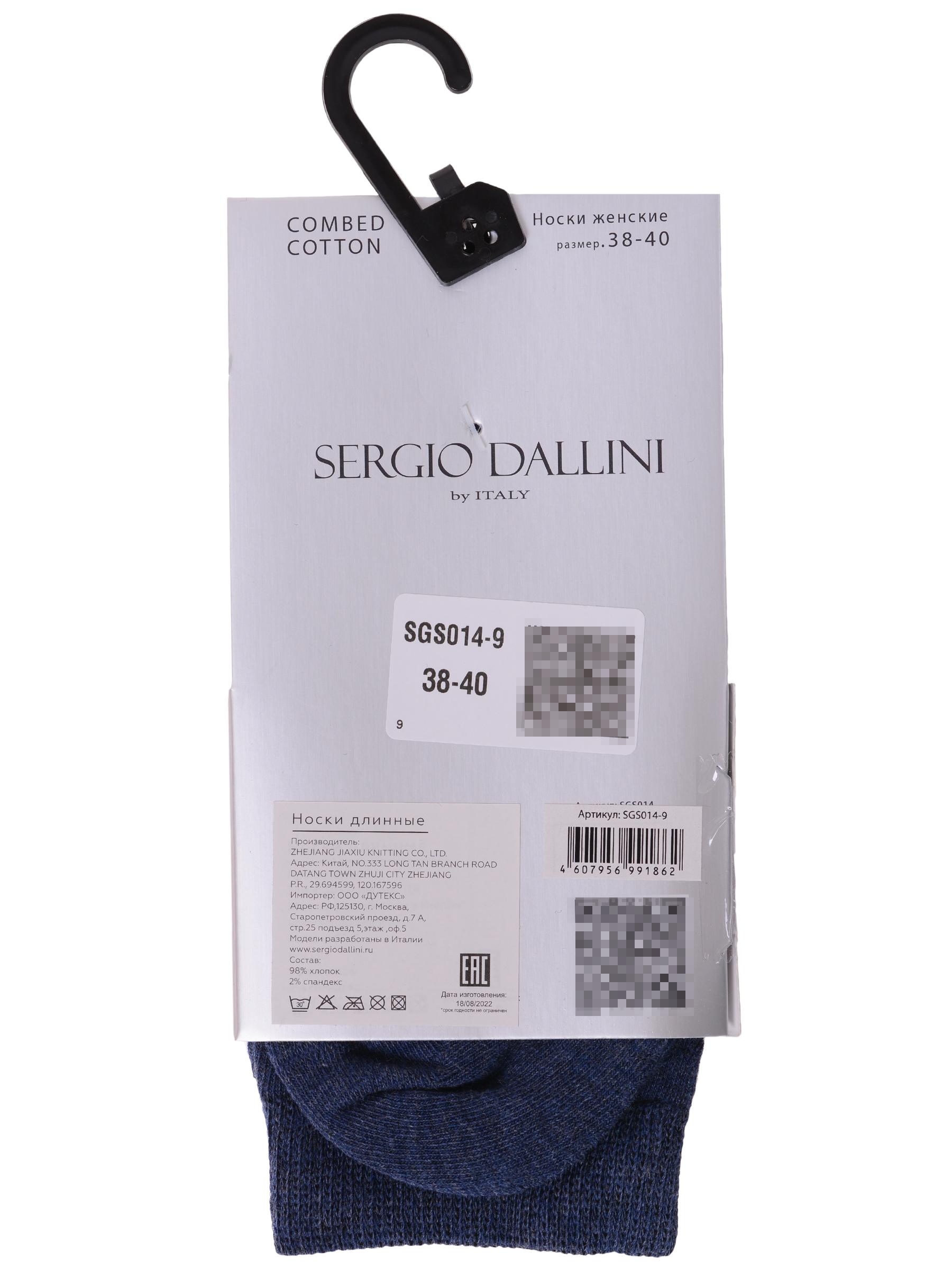 Круглогодичные высокие женские носки, цвет синий, классические, шов кеттельный (бесшовная технология), принт (рисунок): логотип, однотонный, состав: 98% хлопок, 2% спандекс, арт. SGS014-9. Производитель «Китай, страна бренда - Италия» под брендом «Sergio dallini».