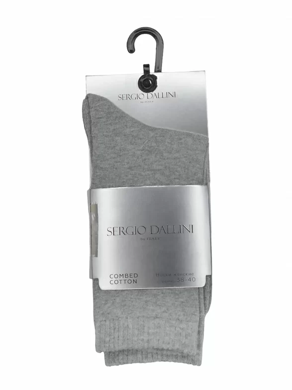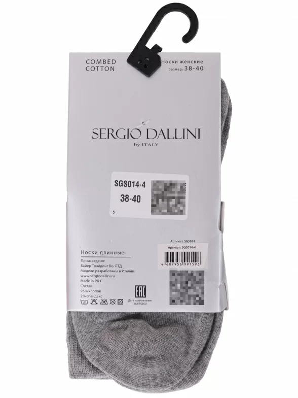 Круглогодичные высокие женские носки, цвет светло-серый, классические, шов кеттельный (бесшовная технология), принт (рисунок): однотонный, без рисунков / узоров, состав: 98% хлопок, 2% спандекс, арт. SGS014-4. Производитель «Китай, страна бренда - Италия» под брендом «Sergio dallini».