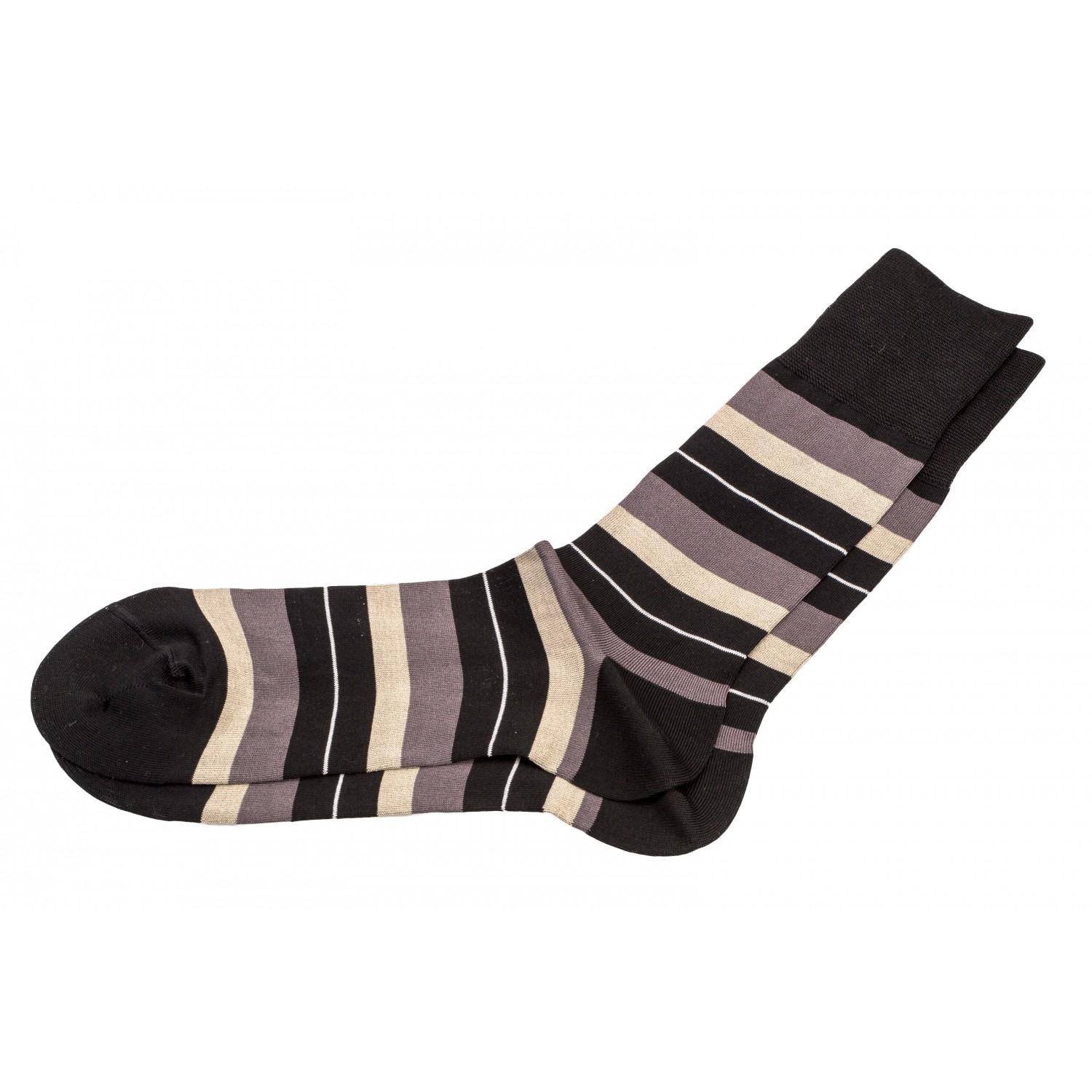 Яркие мужские носки классической длины, оформленные контрастными разноцветными полосками. Модель изготовлена из качественного трикотажа на основе премиального мерсеризованного хлопка и отличается особой гладкой фактурой, а также высокой износостойкостью. Высокая резинка распределяет давление и снижает нагрузку на сосуды.