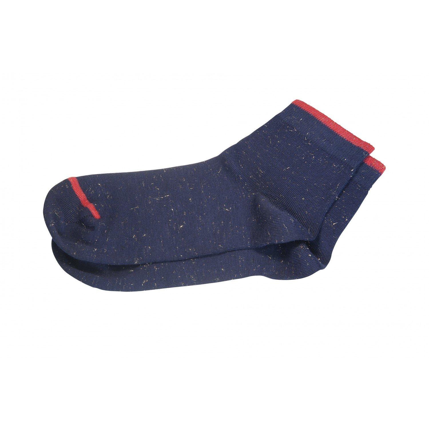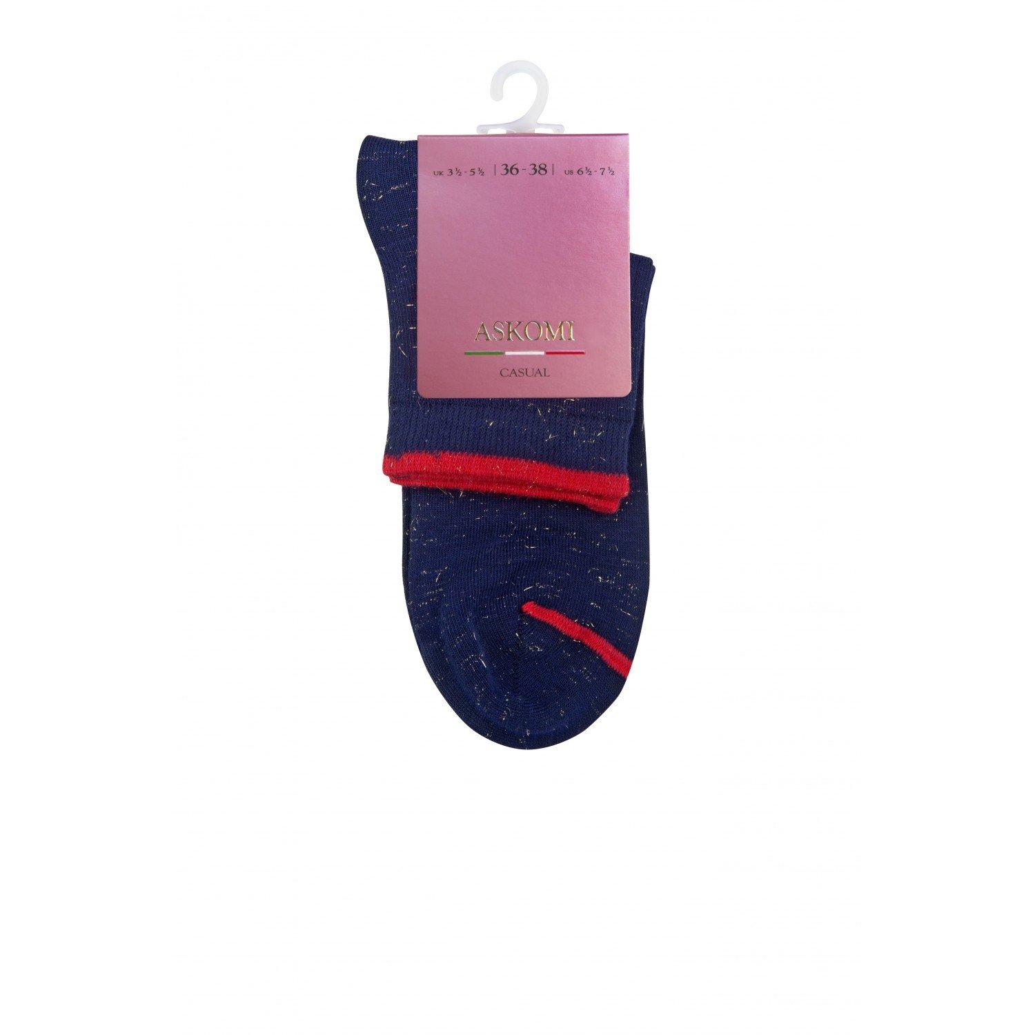 Женские носки из трикотажа на основе вискозы. Они отлично тянутся и обладают особой гладкой фактурой. Резинка и мысок декорированы контрастными акцентирующими полосками.